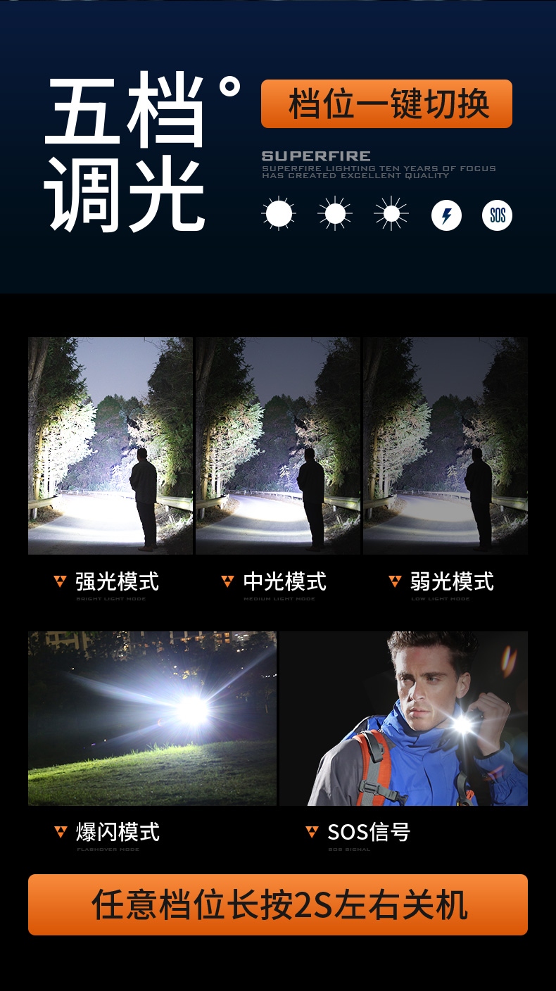 5、多重安全程序,保护手电,延长使用寿命