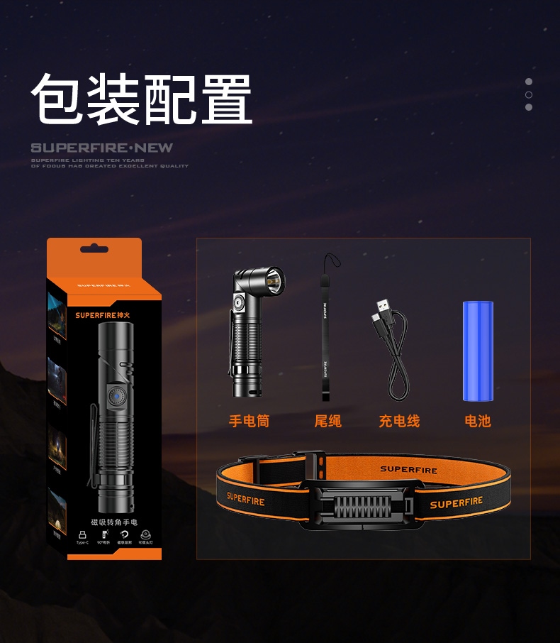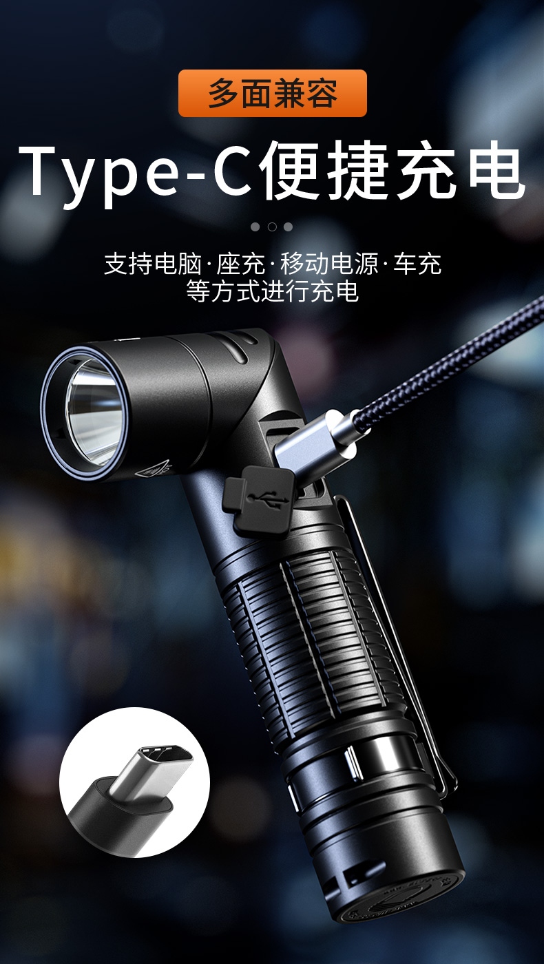 四档调光 Type-C充电 电量显示 铝合金筒身 持久续航 强力防水