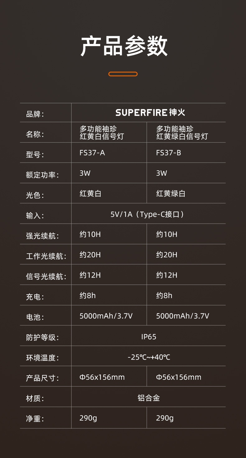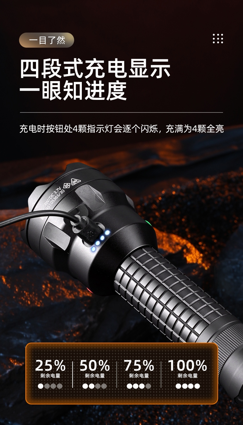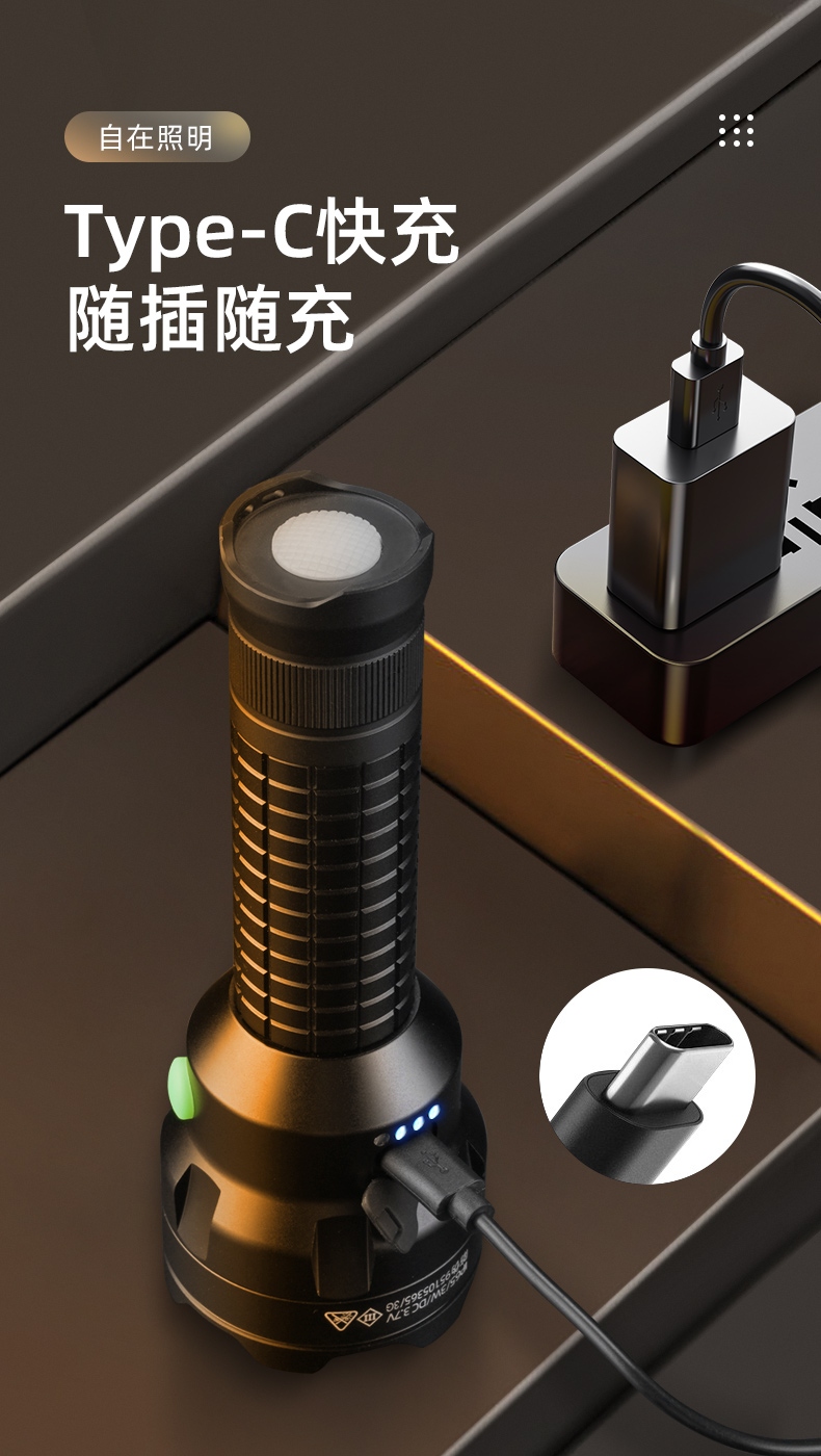 四档调光 Type-C充电 电量显示 铝合金筒身 持久续航 强力防水