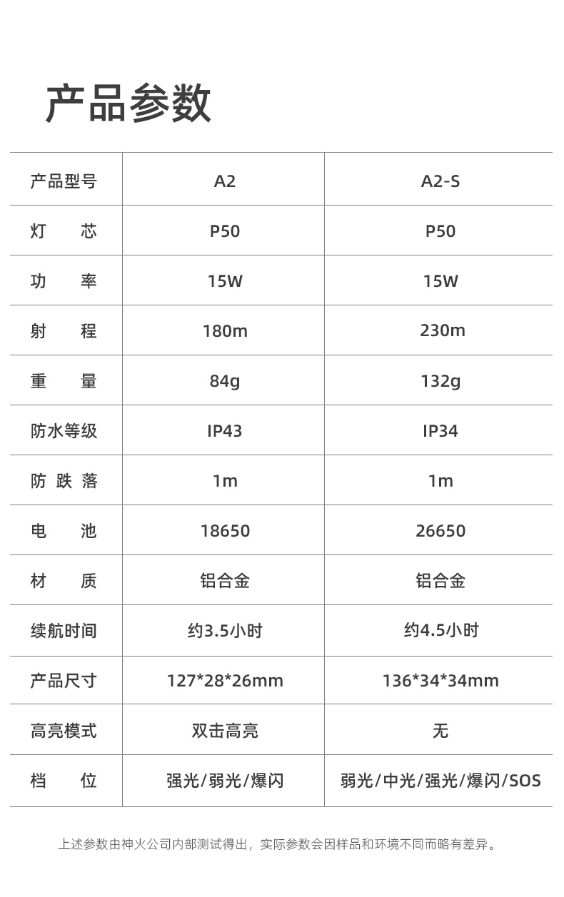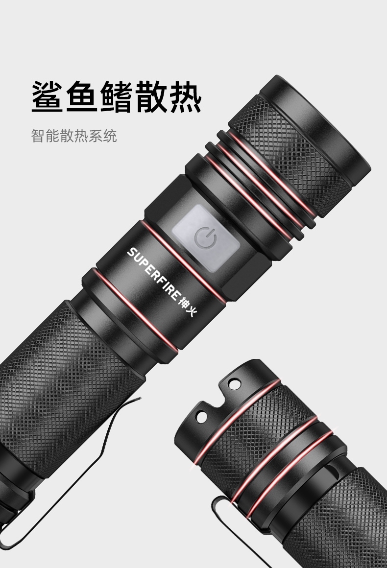 1、千米远射,射程更远,光斑更聚焦。 2、进口灯珠,亮度高,照明效果更好。 3、前后双按键,光源一键点亮,高亮瞬间开启。