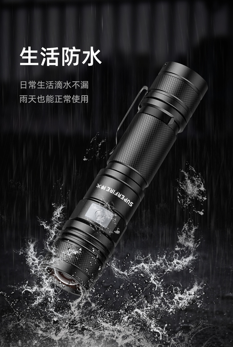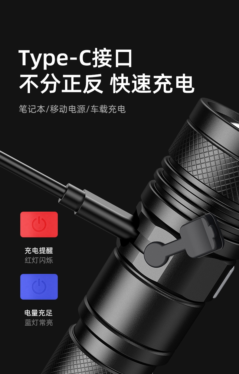 四档调光 Type-C充电 电量显示 铝合金筒身 持久续航 强力防水