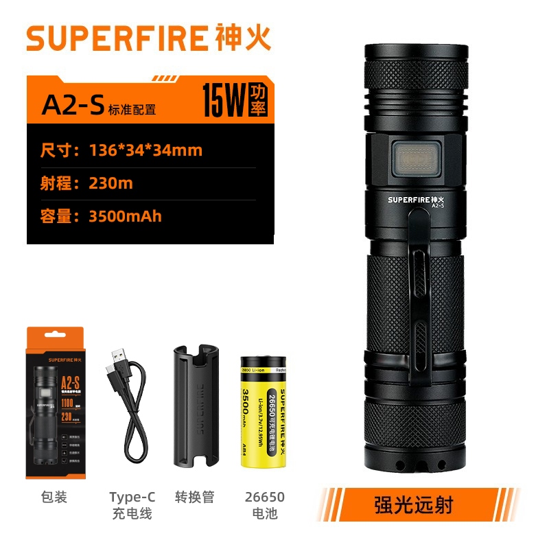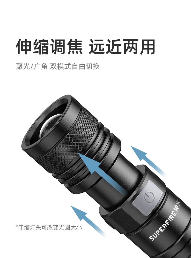 A2同系列,P50大功率,可USB直充,调焦款,配26650电池高续航,调焦手电中的极品,现已升级type-C充电口