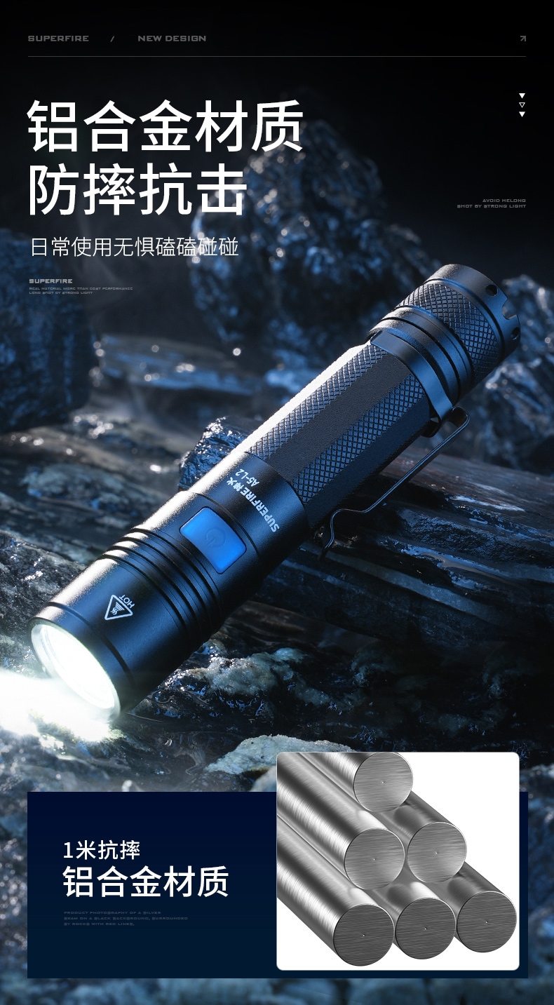 6、铝合金筒身,防水耐摔。