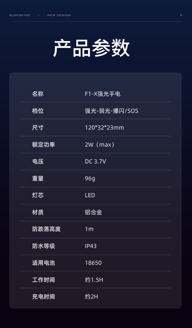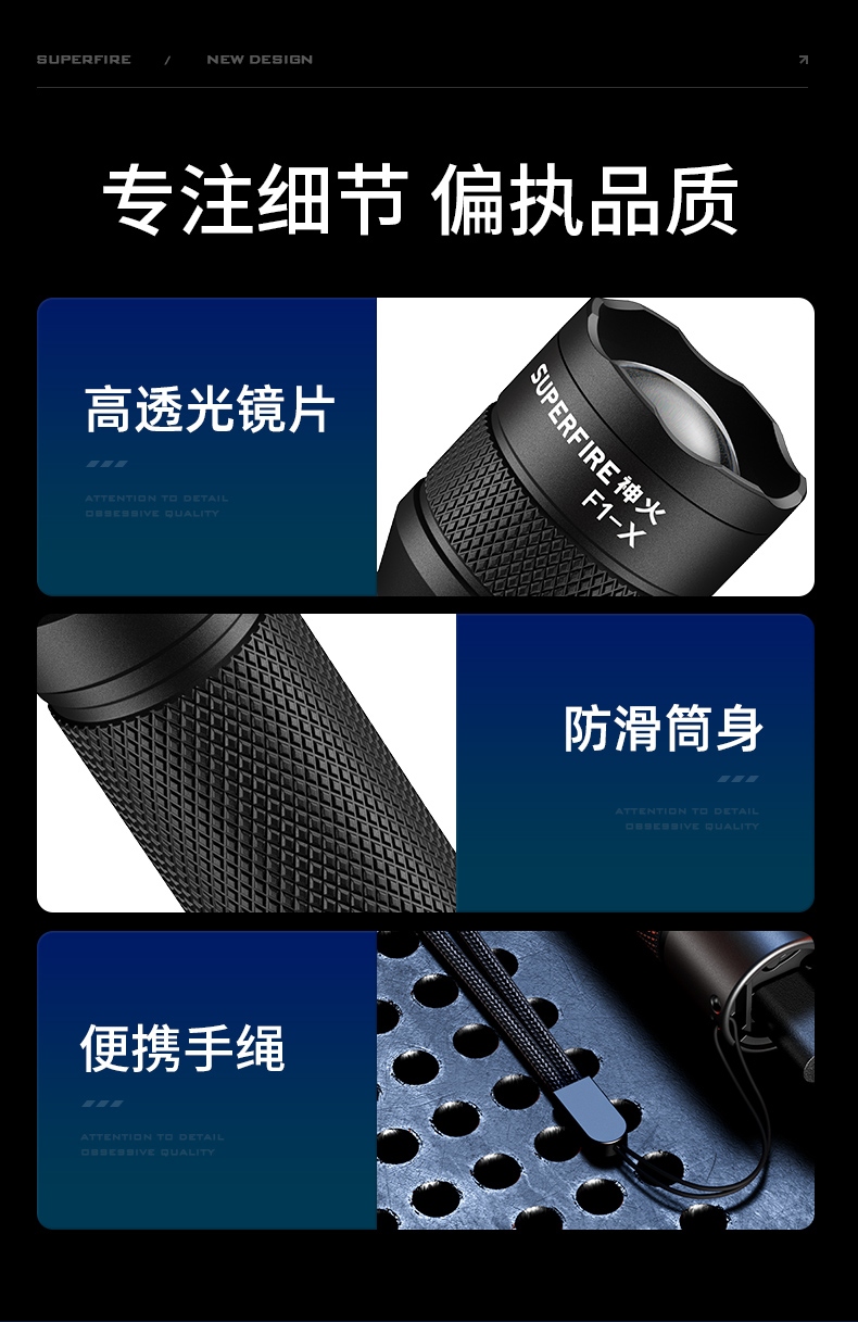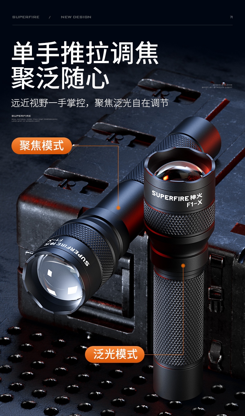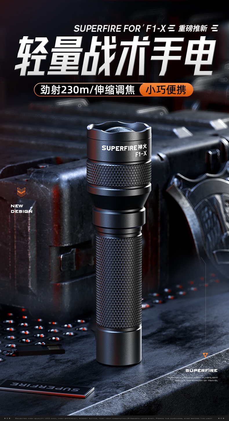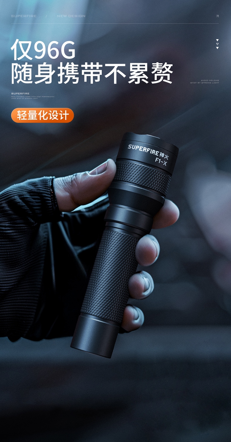 1、多种安全程序,可有效保护手电使用安全,延长手电使用寿命。 2、精致外观,小巧便携。 3、推拉灯头,可实现伸缩调焦。