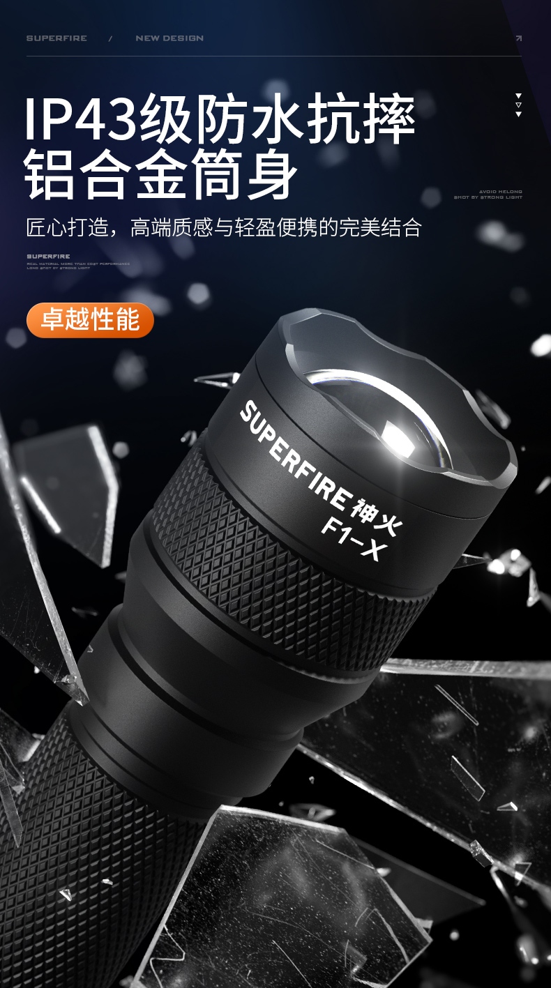 5、铝合金筒身,防水耐摔。
