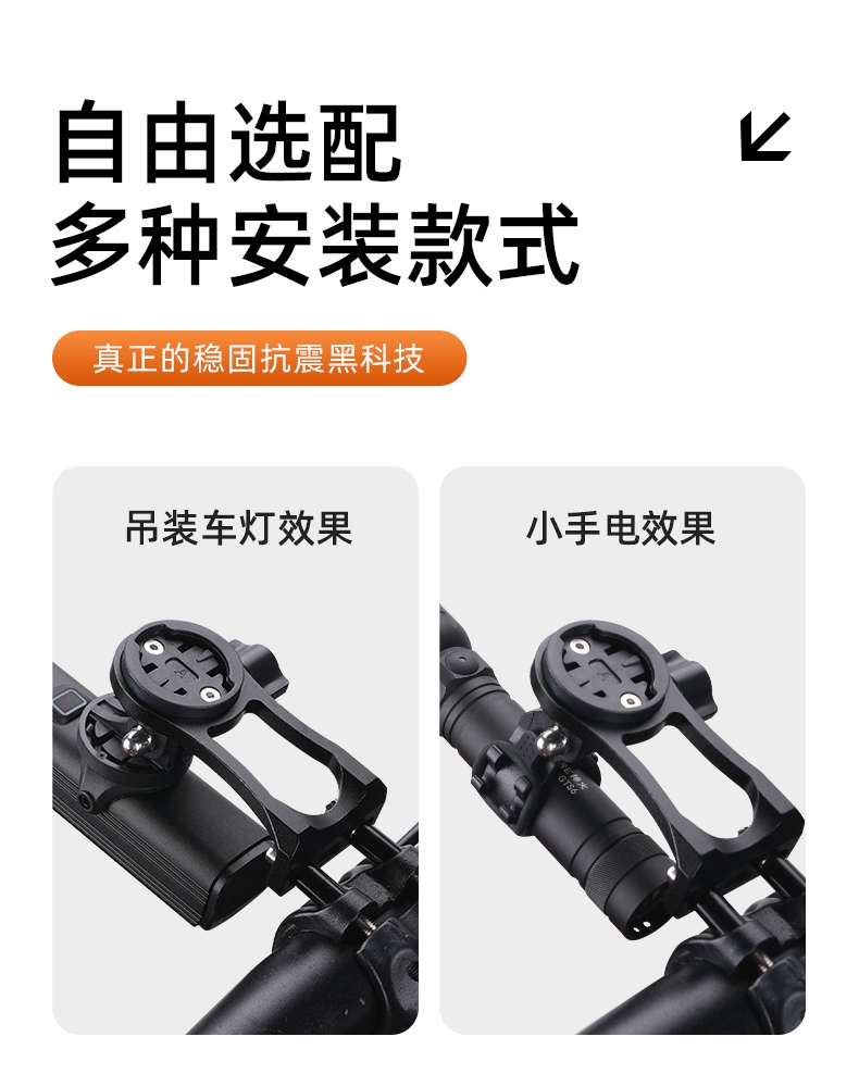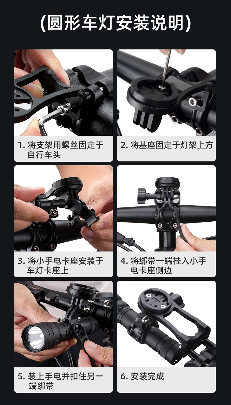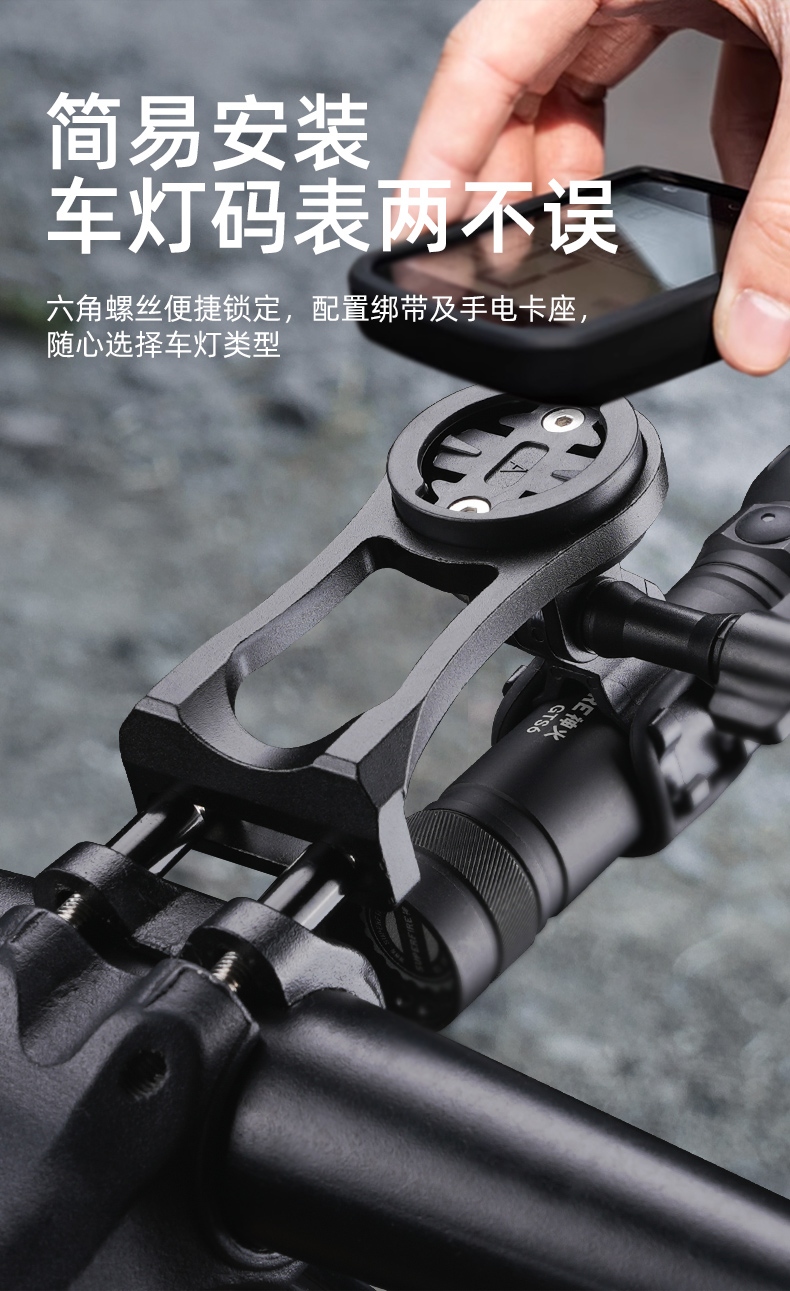 六角螺丝便捷锁定,配置绑带及手电卡座,随心选择车灯类型