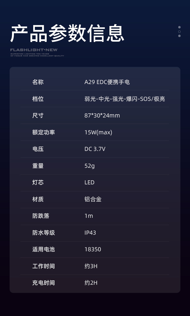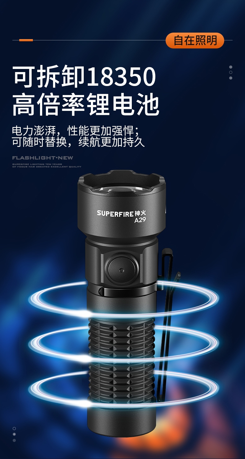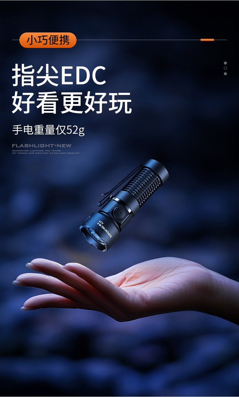 4、EDC定焦小手电,单手操控,简单方便。