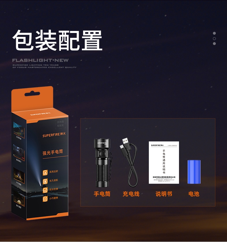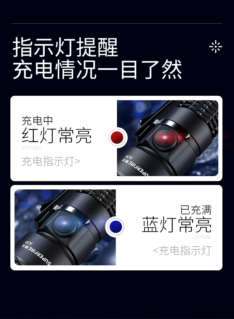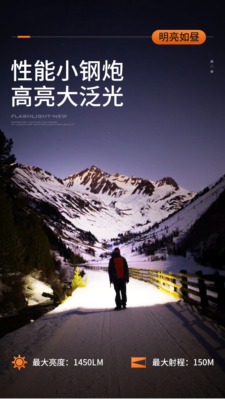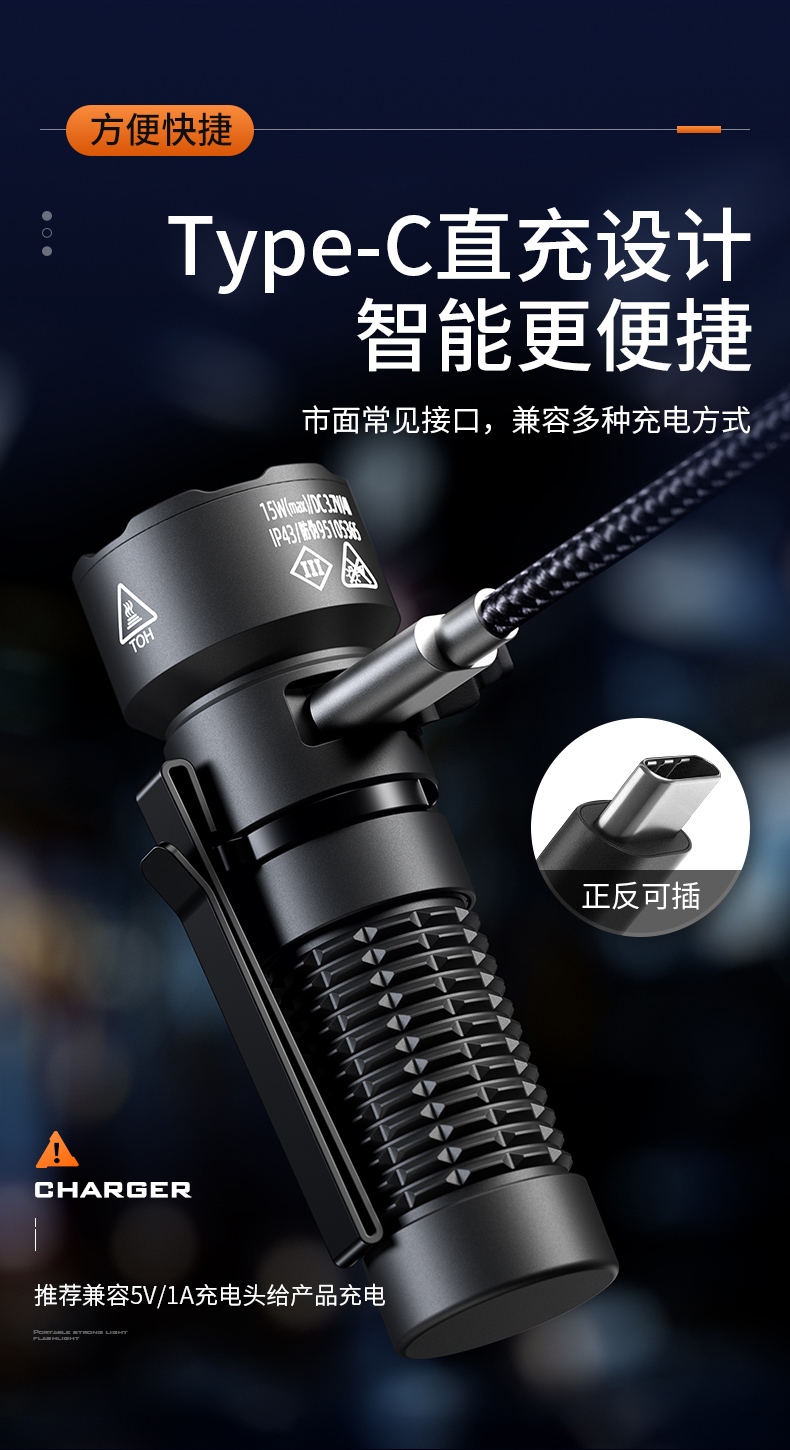四档调光 Type-C充电 电量显示 铝合金筒身 持久续航 强力防水
