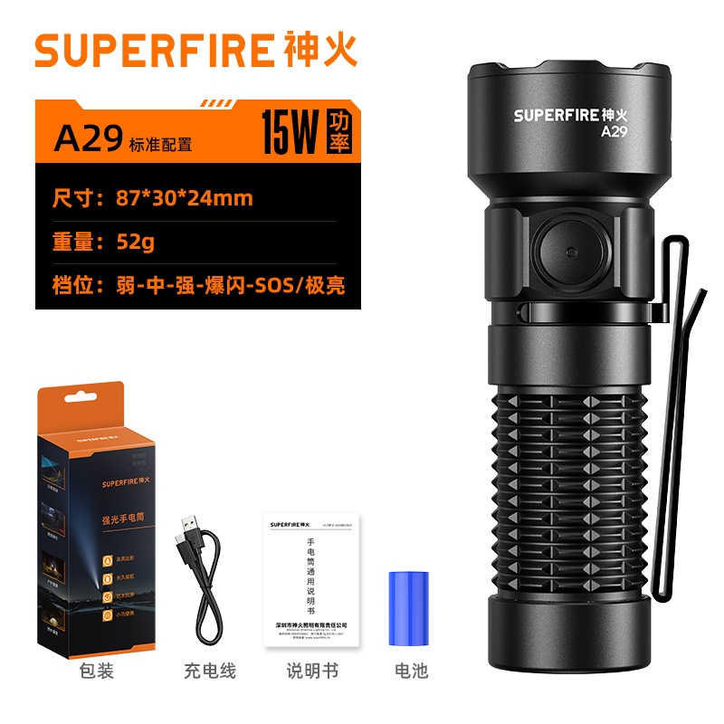 1、千米远射,射程更远,光斑更聚焦。 2、进口灯珠,亮度高,照明效果更好。 3、前后双按键,光源一键点亮,高亮瞬间开启。