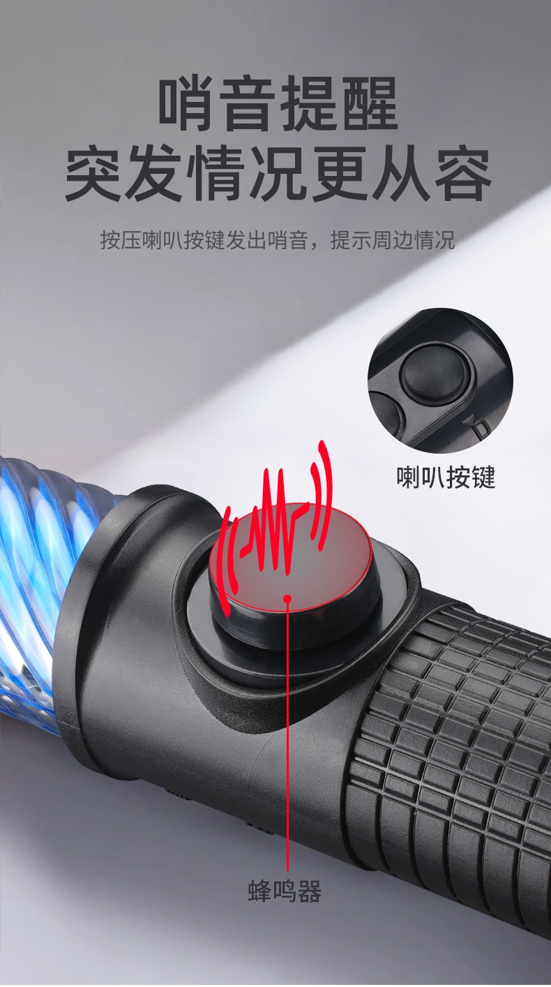 1,灯具带有喇叭功能,按压蜂鸣键即可发出哨音;