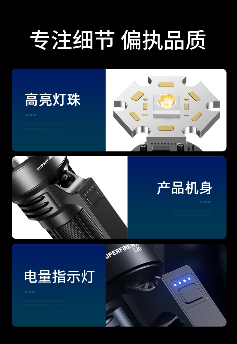 8、铝合金筒身,防水耐摔。