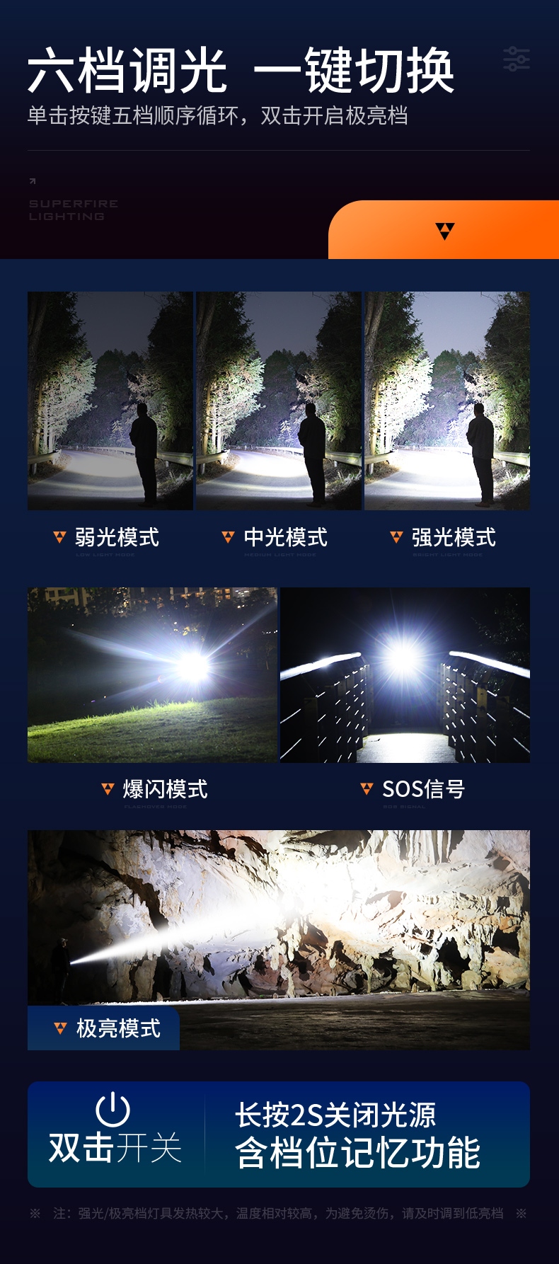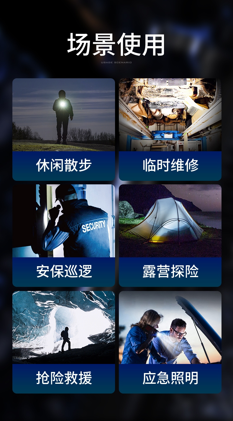 5、续航约5-8H,有效满足长时间照明使用。