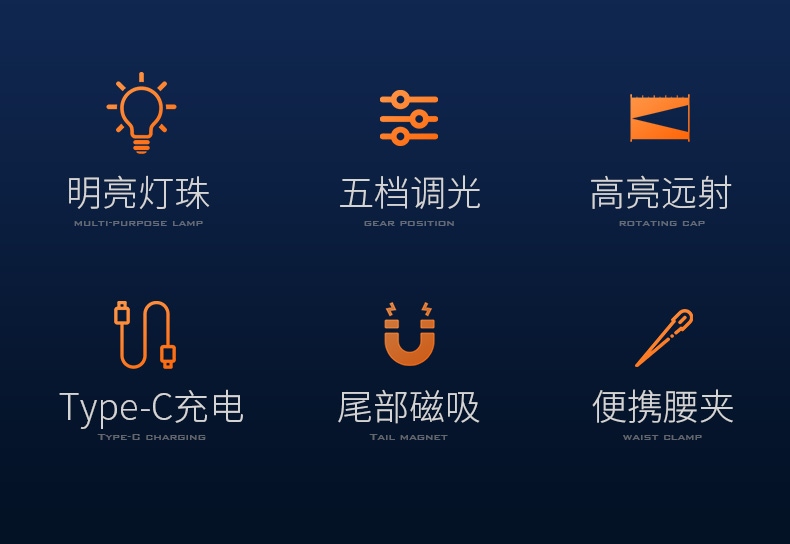 1、精致外观,时尚小巧; 2、高亮灯珠,亮度高,照明效果更好; 3、含腰夹、磁吸、手绳,携带方便。