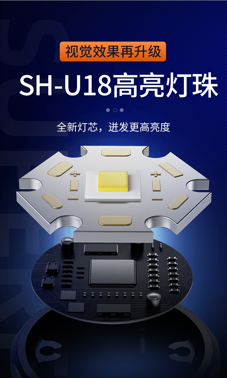 1、千米远射,射程更远,光斑更聚焦。 2、进口灯珠,亮度高,照明效果更好。 3、前后双按键,光源一键点亮,高亮瞬间开启。