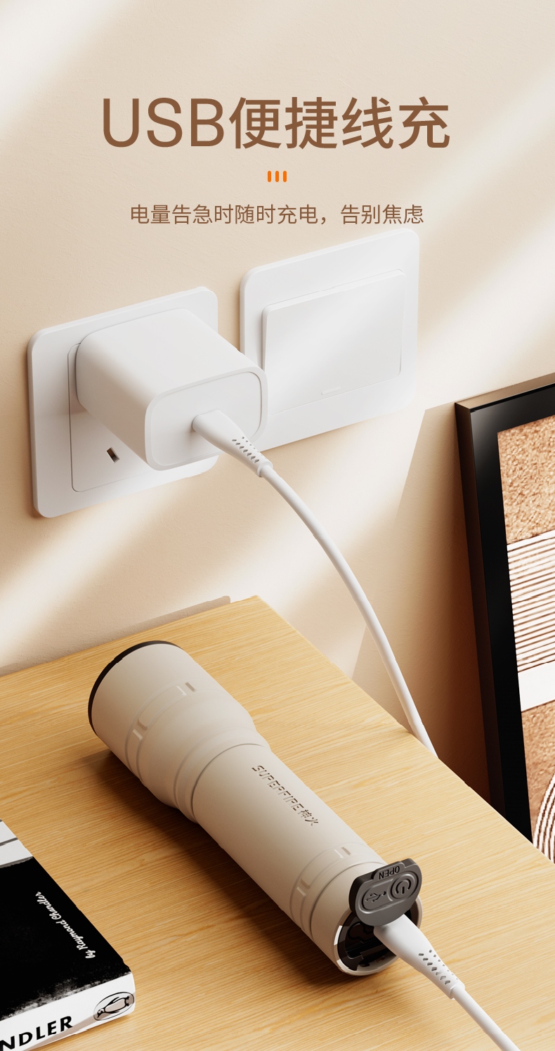 四档调光 Type-C充电 电量显示 铝合金筒身 持久续航 强力防水