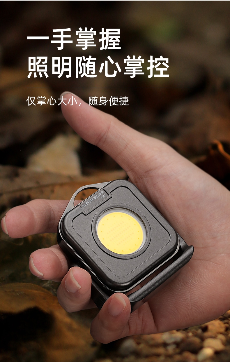 5、一手掌握,照明随心掌控,仅掌心大小,随身便捷;