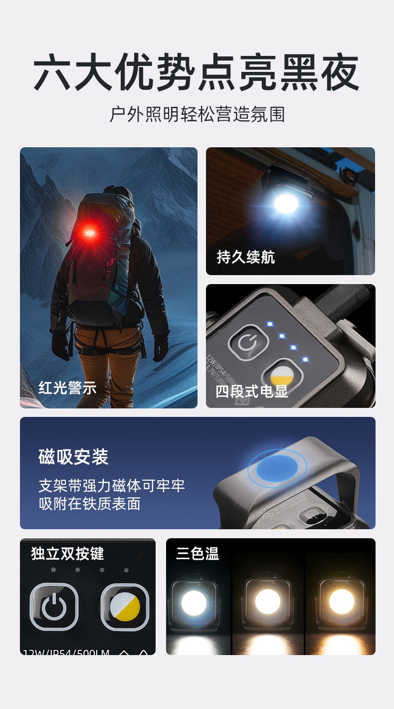 7、强磁安装,化身固定照明灯,磁体可牢牢吸附在铁质表面;