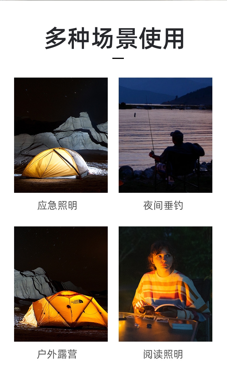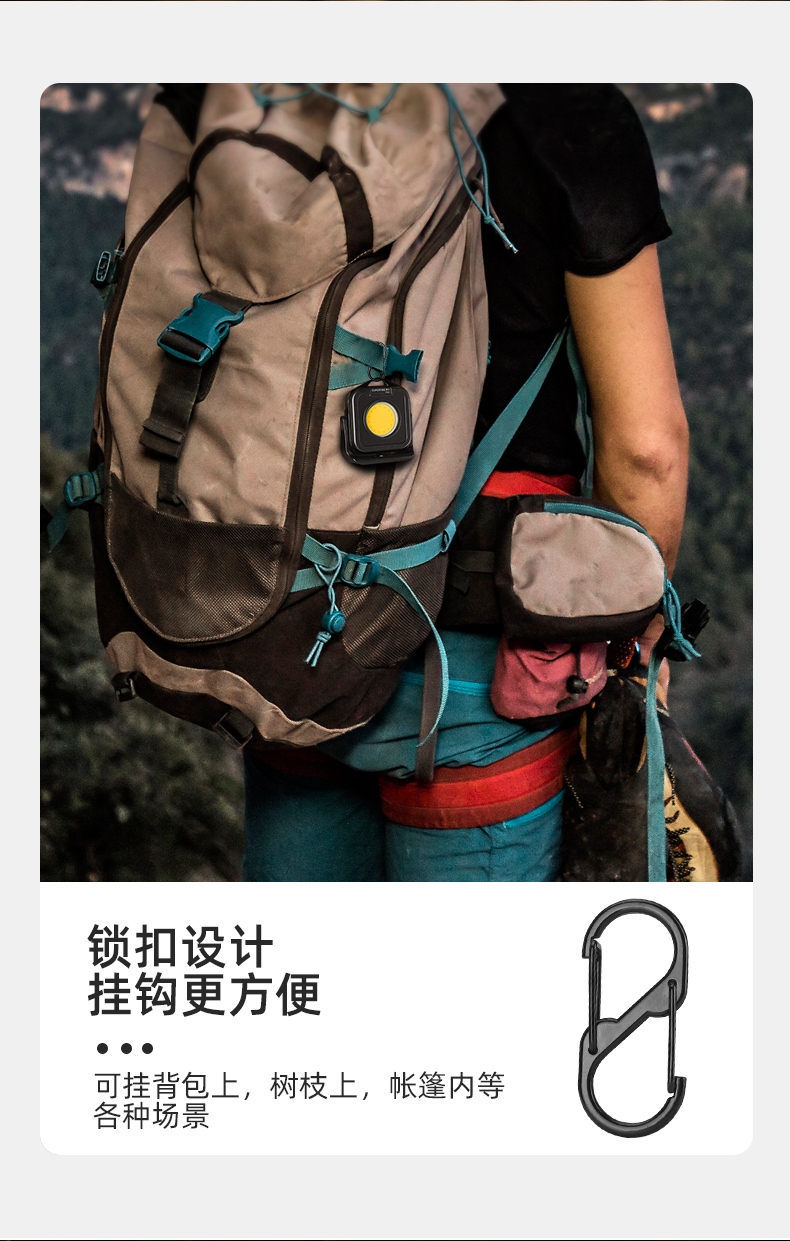 6、锁扣设计,挂钩更方便,可挂背包上,树枝上,帐篷内等;