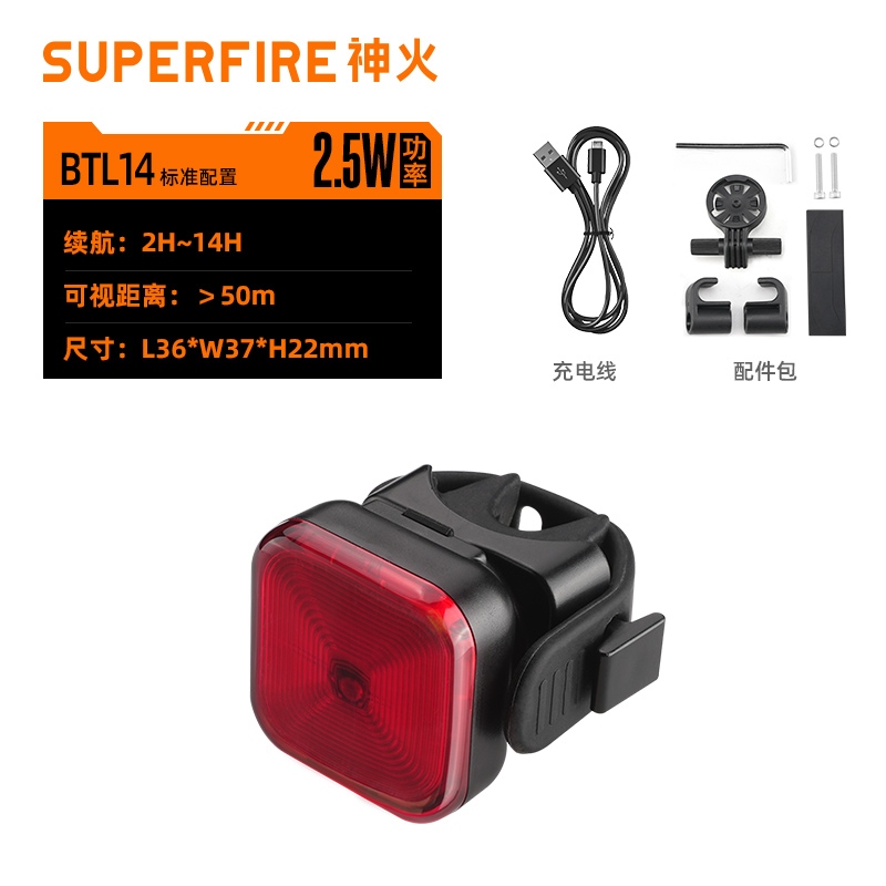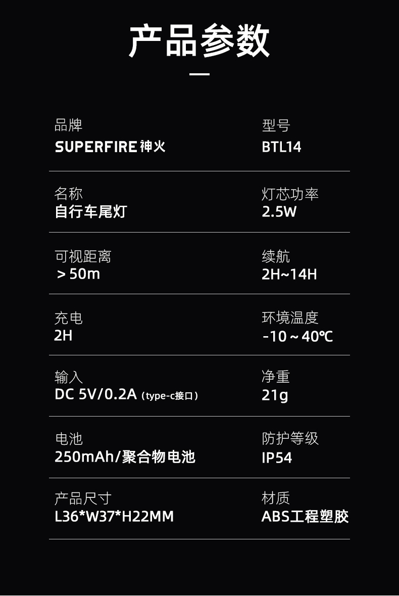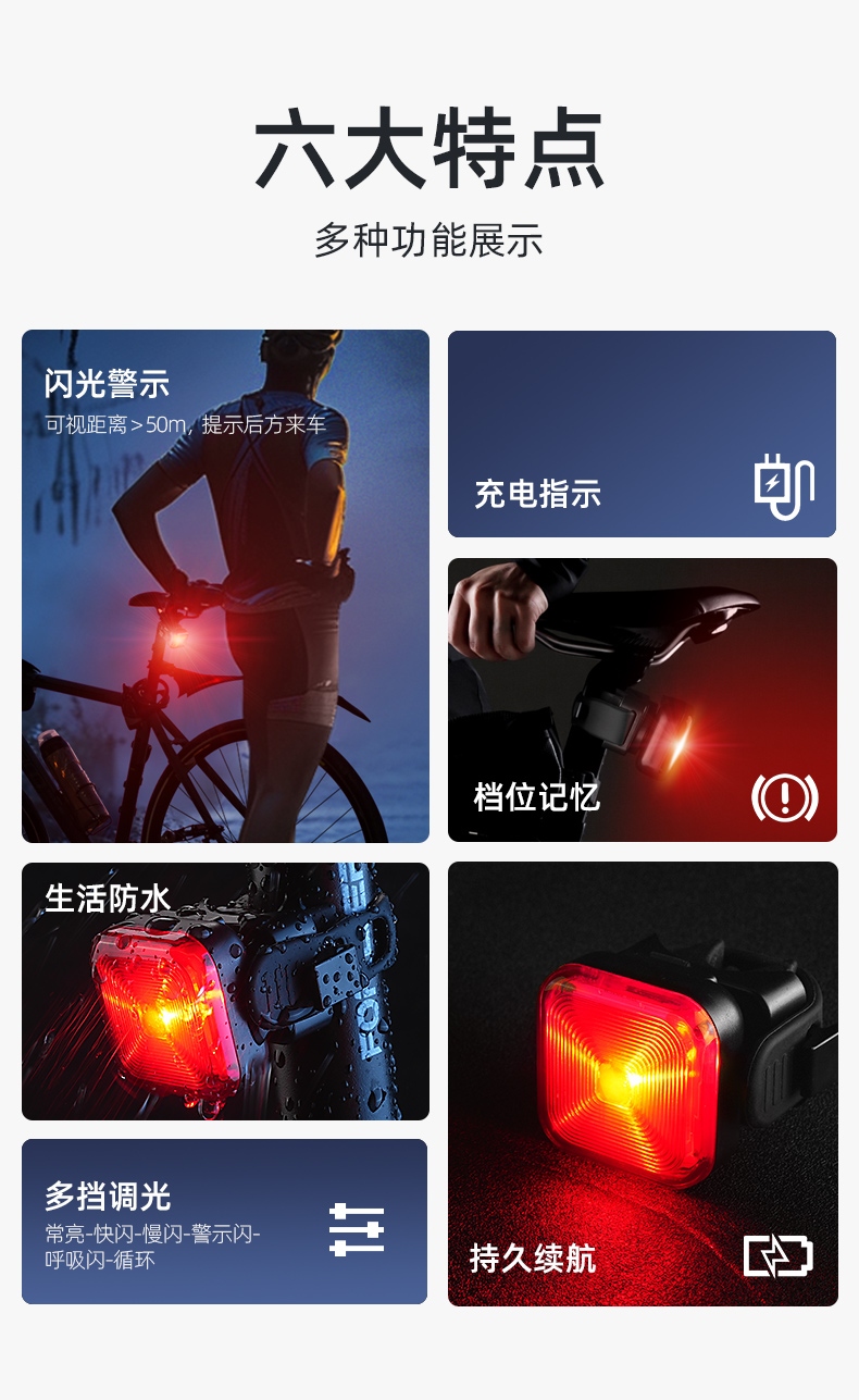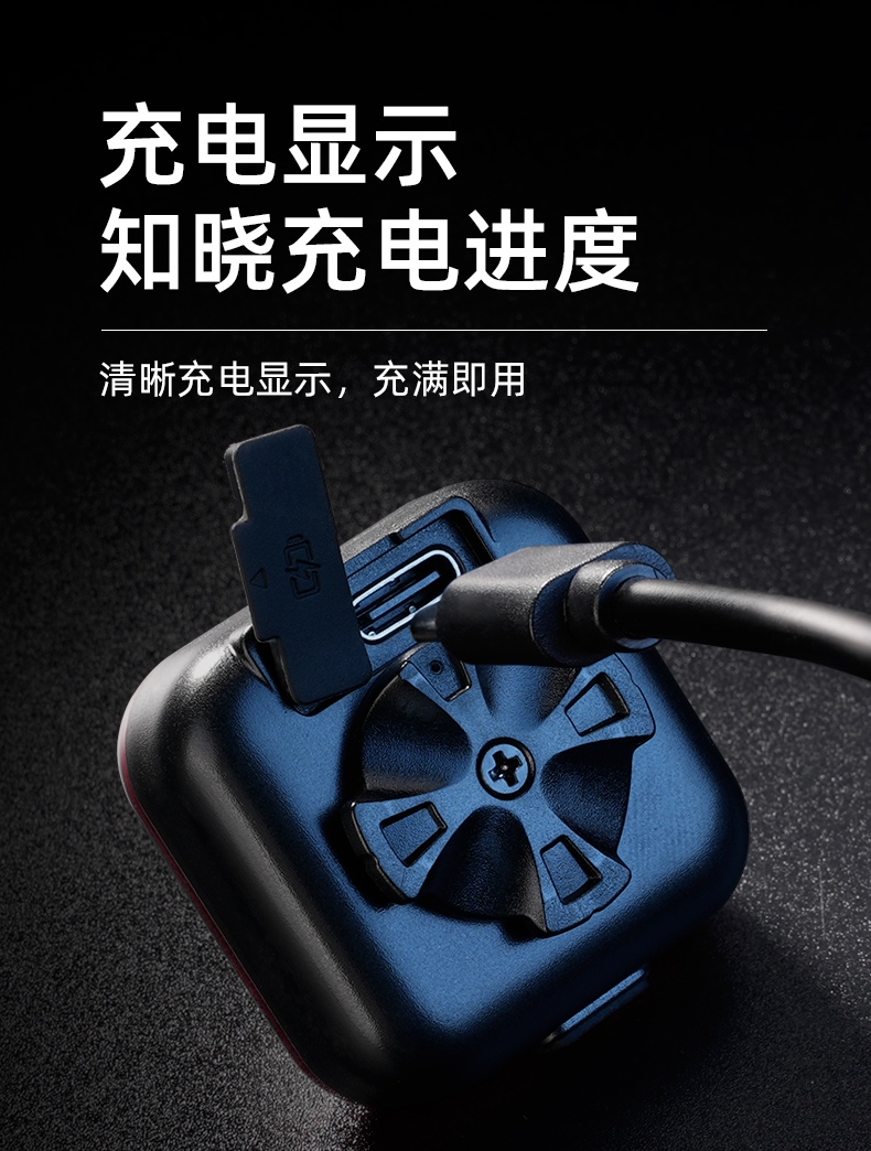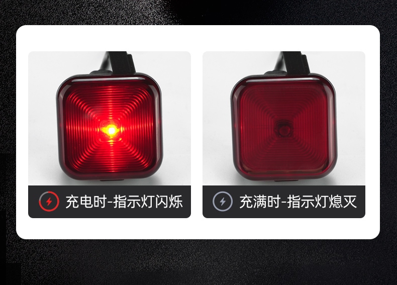 1、按开关键开启光源,挡位依次:常亮-快闪-慢闪-警示闪-呼吸闪-循环,任意挡位下长按关闭。灯具自带挡位记忆功能,再次开启时为之前关闭挡位; 2、配件有两种(管座/弓座)安装座,可根据车型来选择安装; 3、充电时指示灯闪烁,充满指示灯灭。