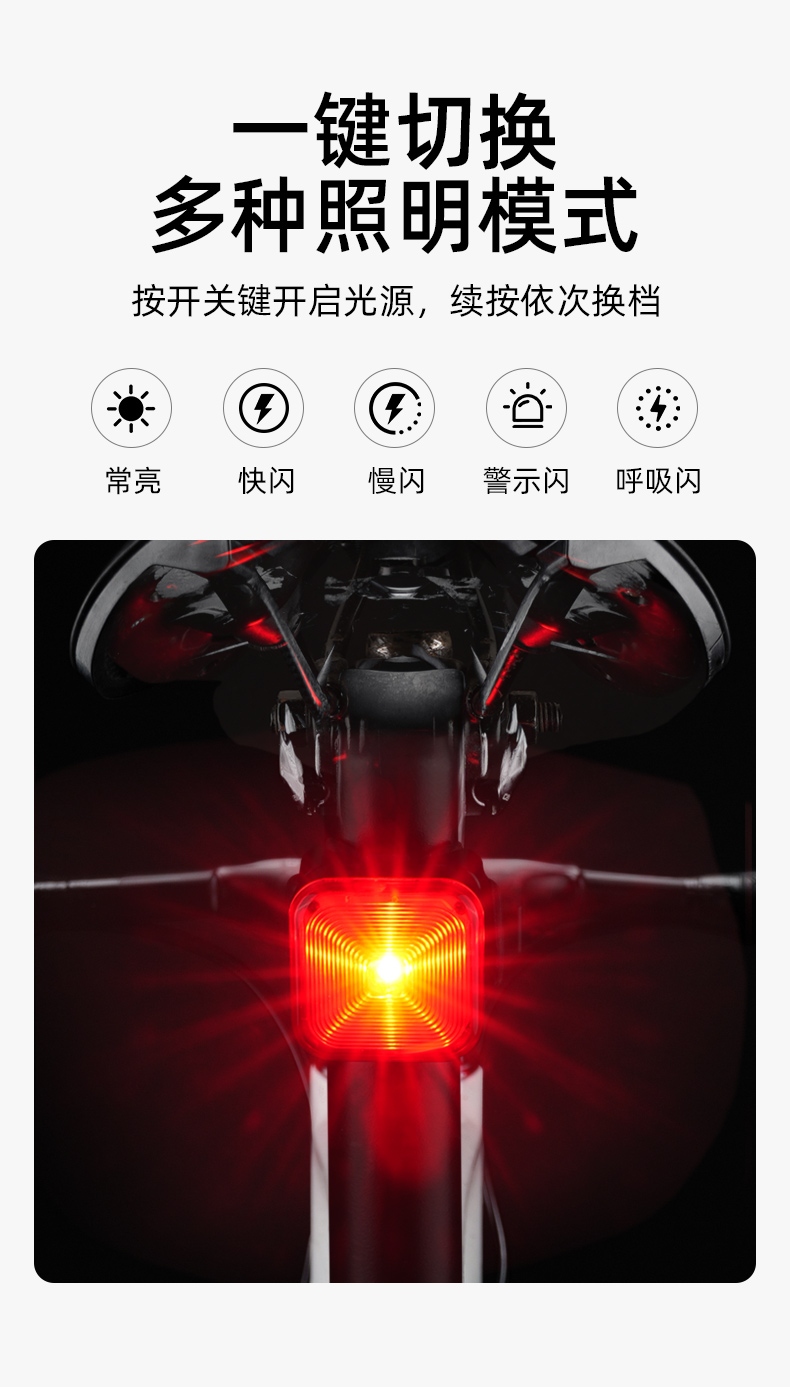 1、四种警示模式,智能感应,刹车更显眼,时常保你身后安全;