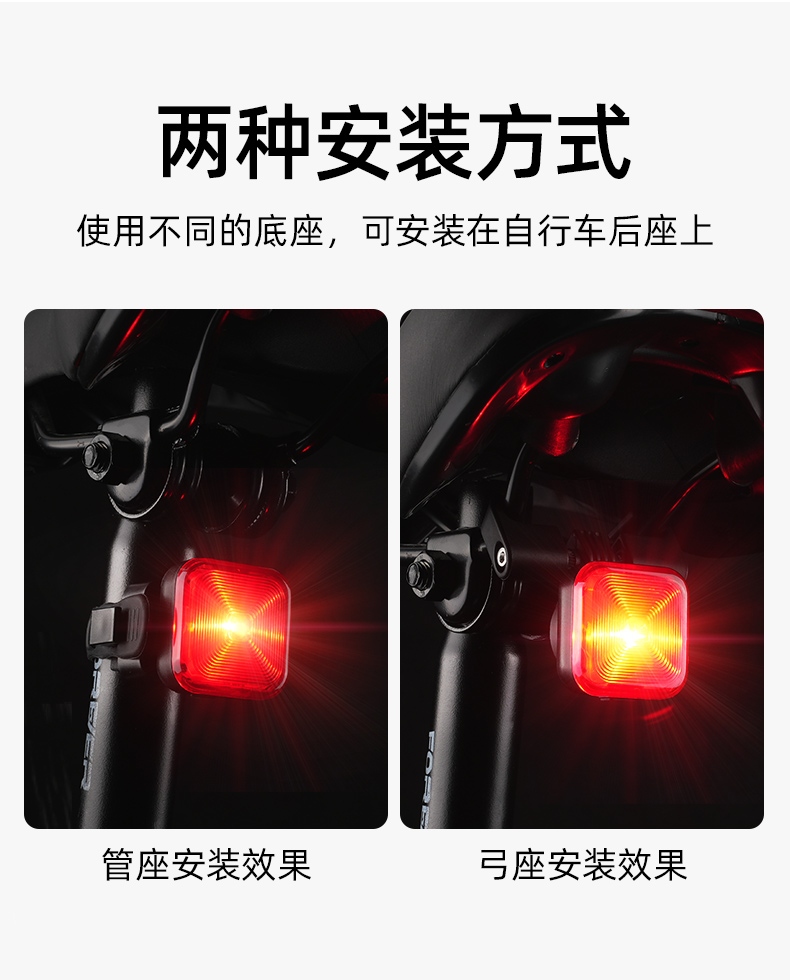 5、两种安装方式,使用不同的底座,可安装在自行车后座上;