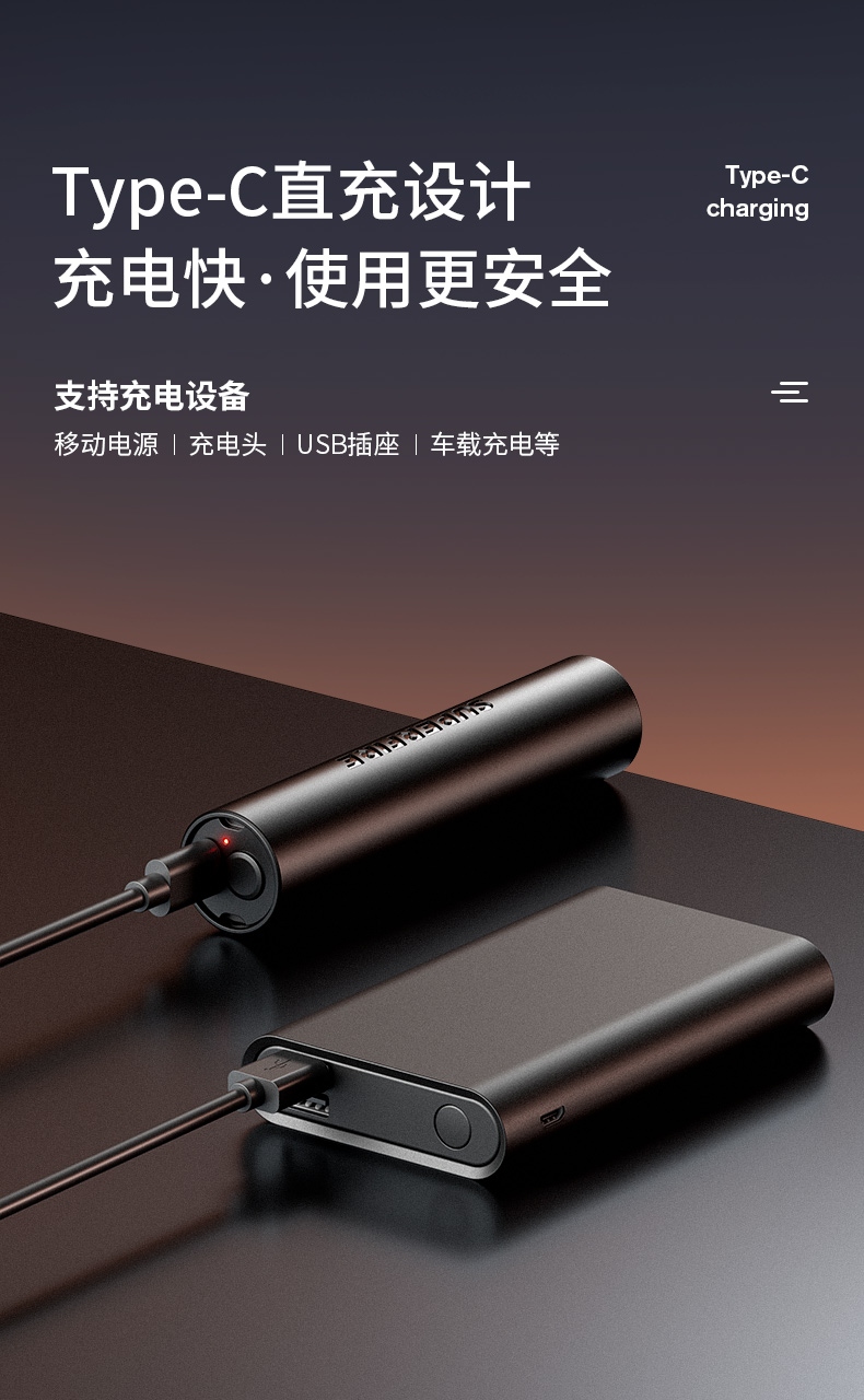 四档调光 Type-C充电 电量显示 铝合金筒身 持久续航 强力防水