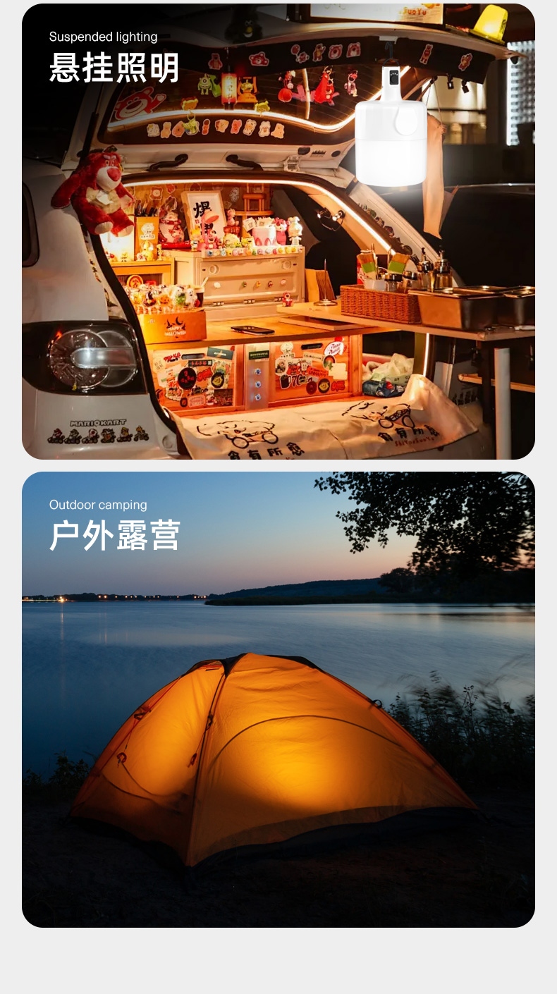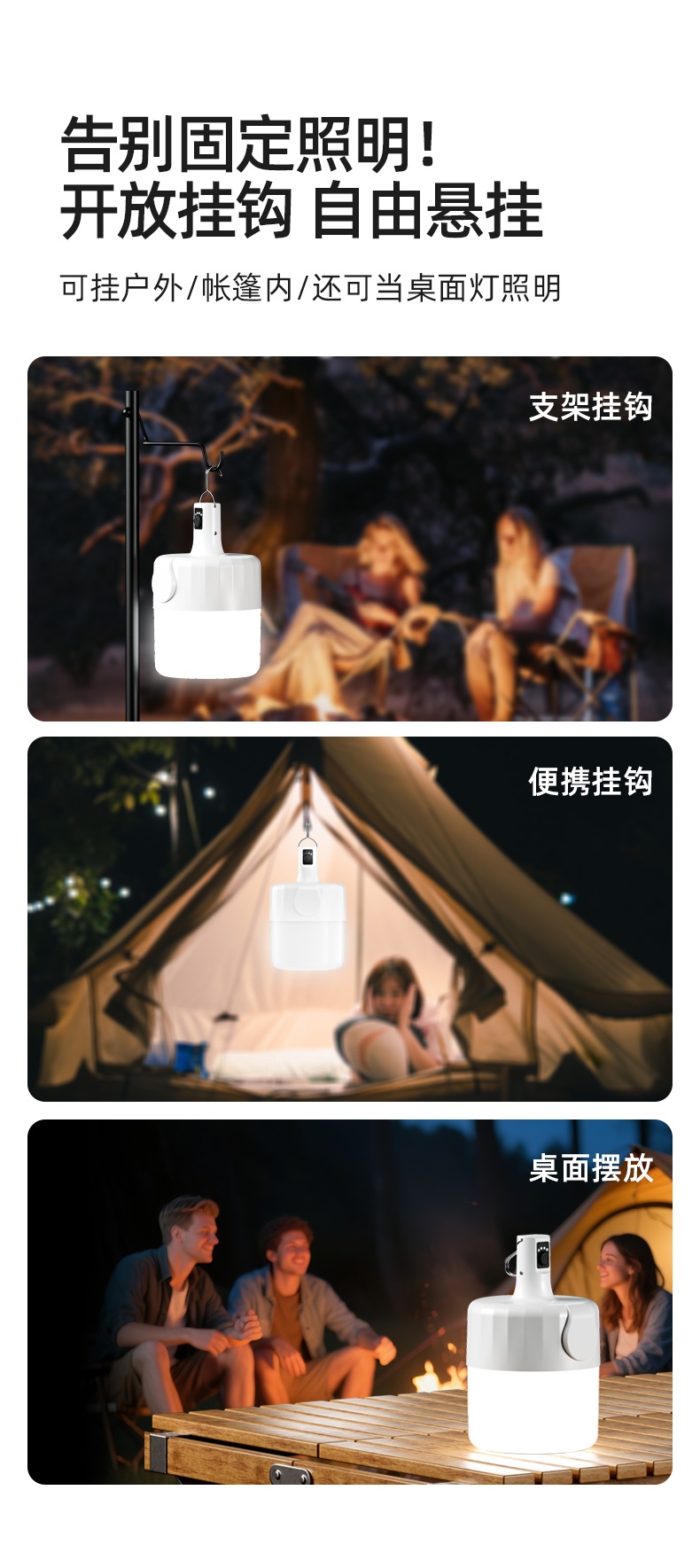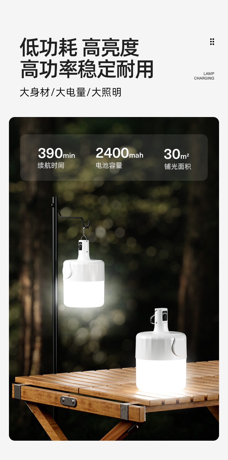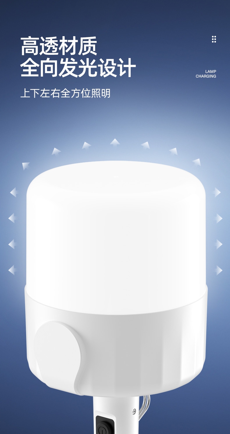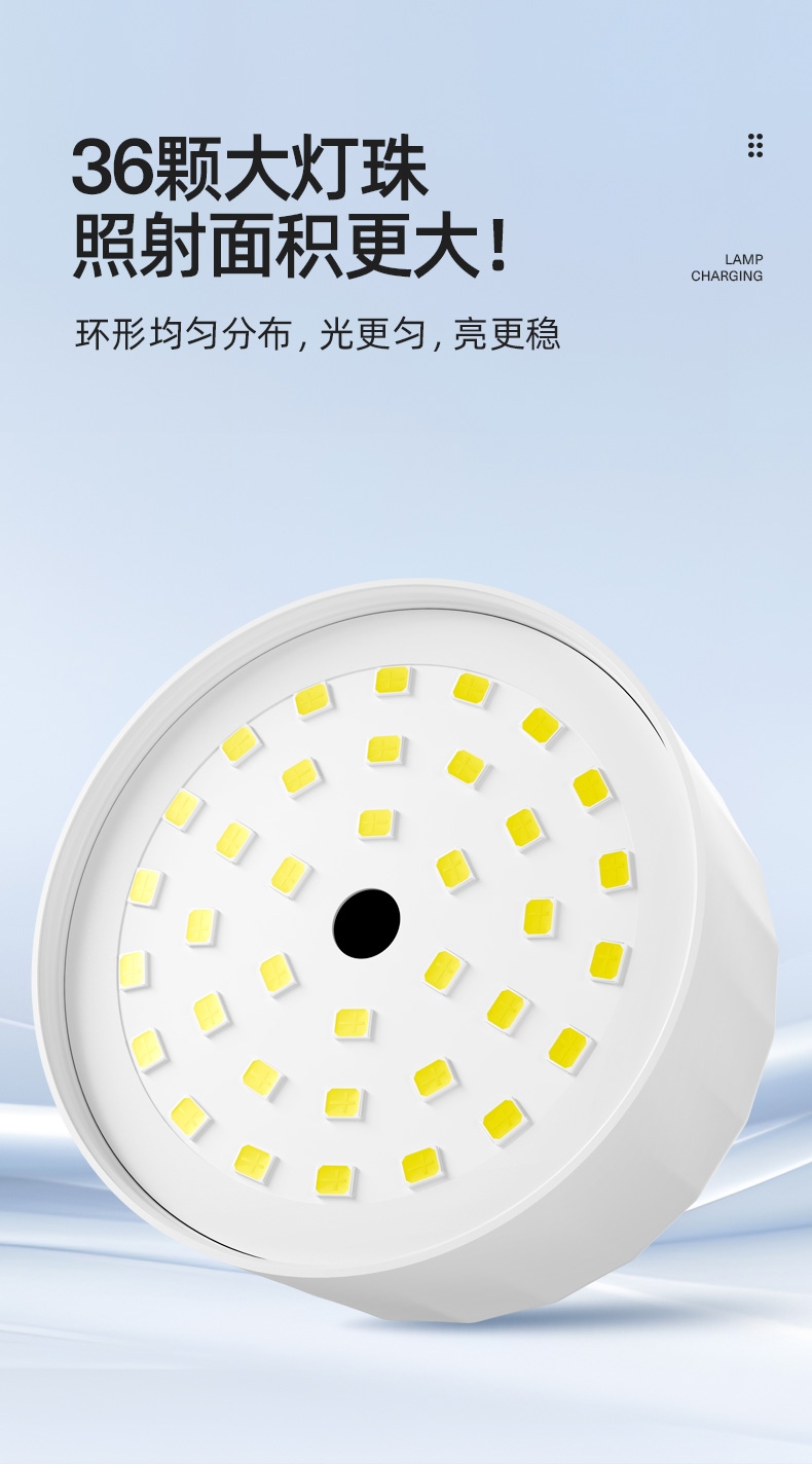 2.多样化充电,使用方便:可使用充电器、充电宝、电脑等设备为灯具充电。充电时可边充电边使用照明功能