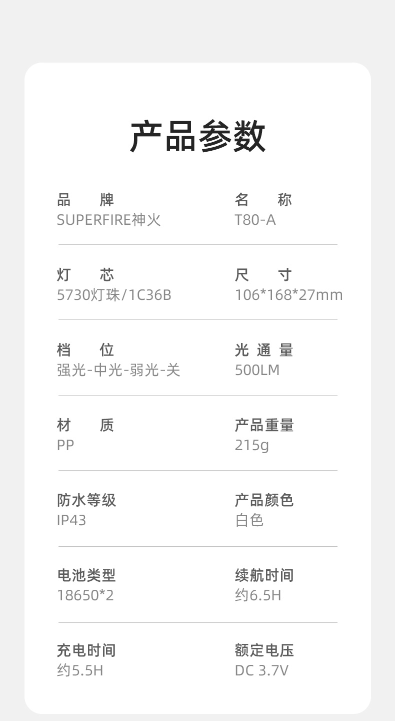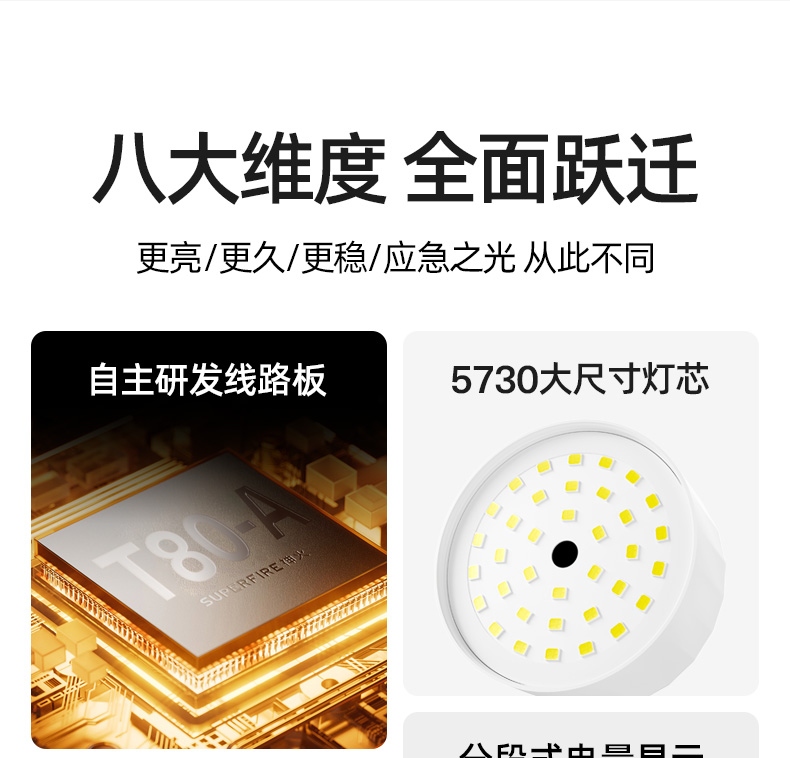 1、六档调光,可满足不同使用场景下的照明需求。 2、进口高亮朗明纳斯灯珠,照明效果更好。 3、含档位记忆,任意档位快捷关机 ,开机恢复关机前档位。