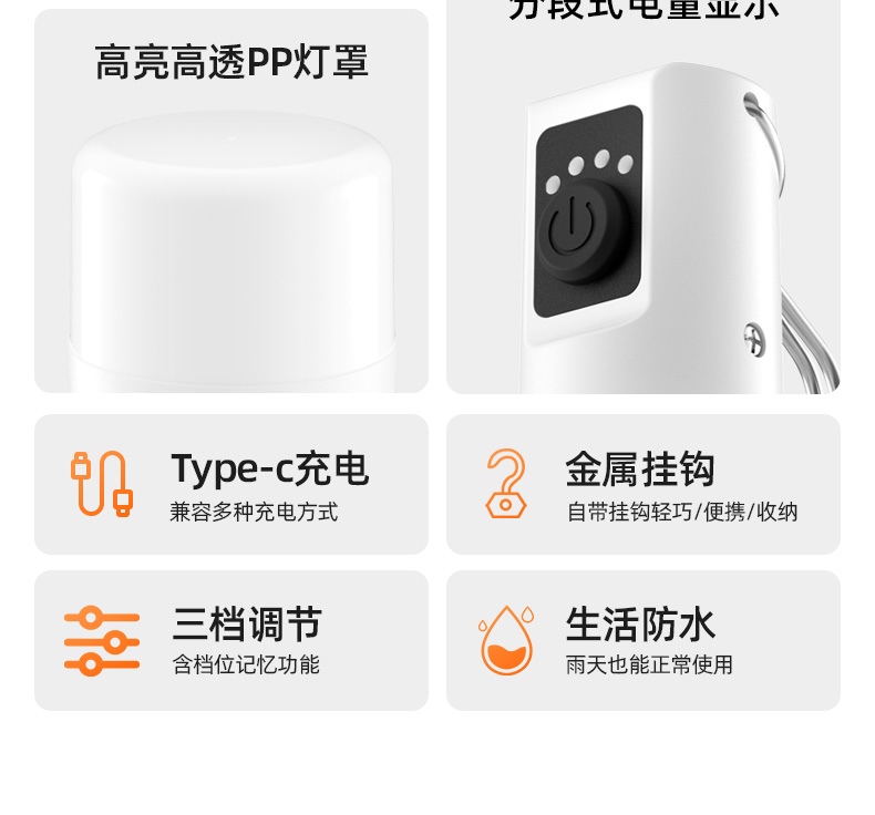 四档调光 Type-C充电 电量显示 铝合金筒身 持久续航 强力防水