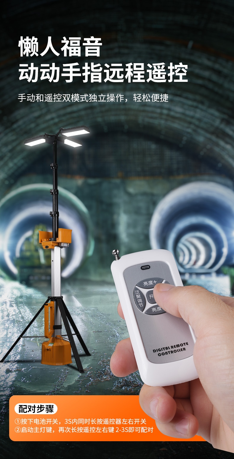 4.3 当关闭电池开关储存,在次使用时,灯具重新上电0-7秒左右是遥控配对时间及配对好的遥控识别时间,7S左右后,才能使用遥控功能。
