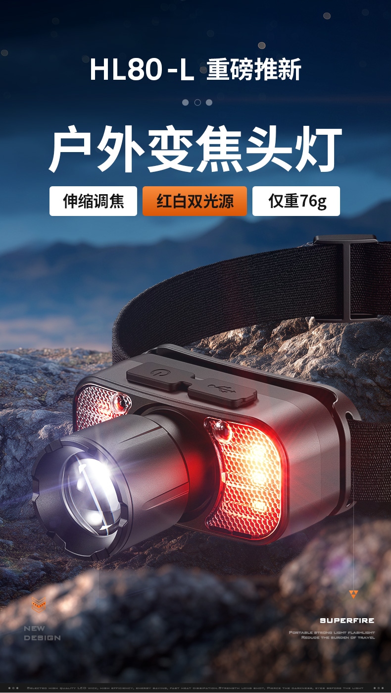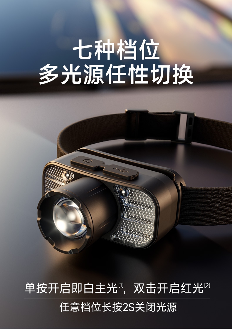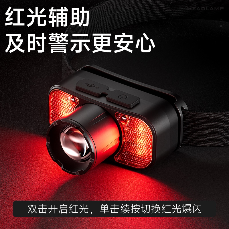 2.此款头灯带有红常亮-红光爆闪,可作警示作用。