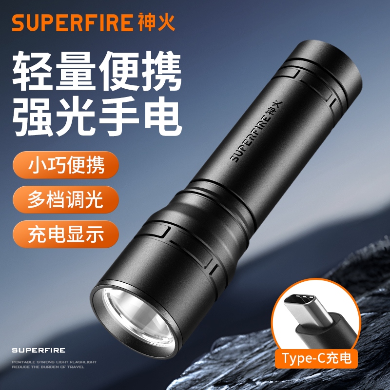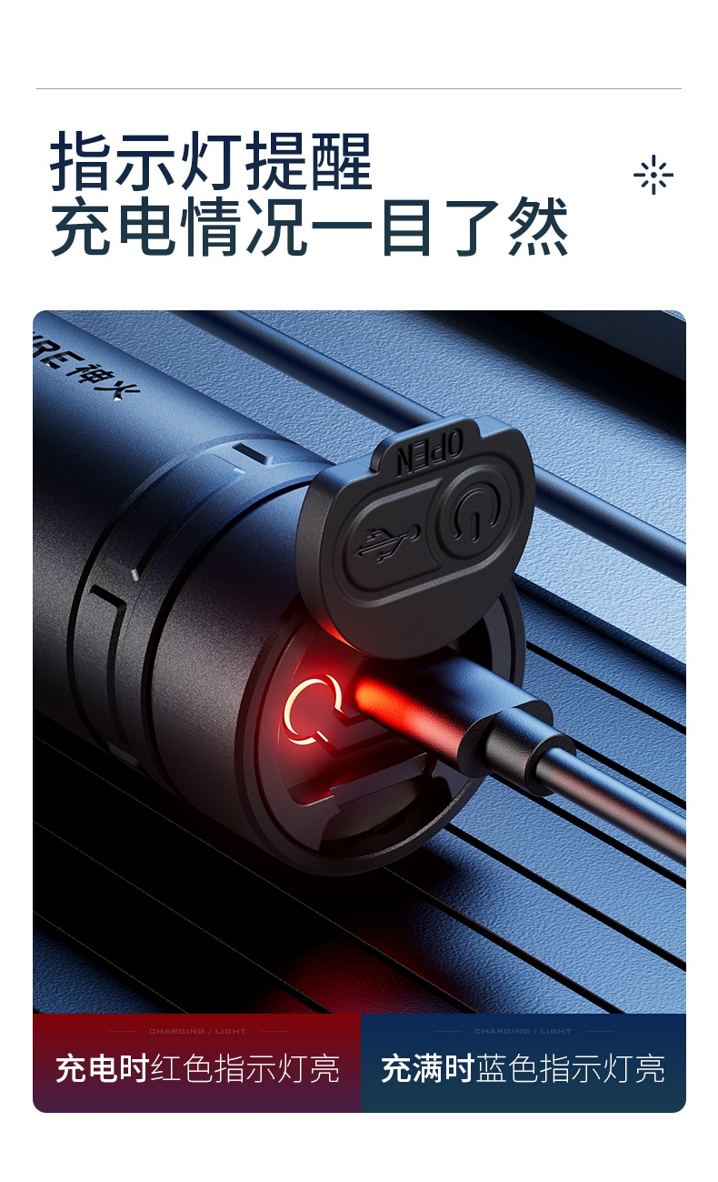 四档调光 Type-C充电 电量显示 铝合金筒身 持久续航 强力防水
