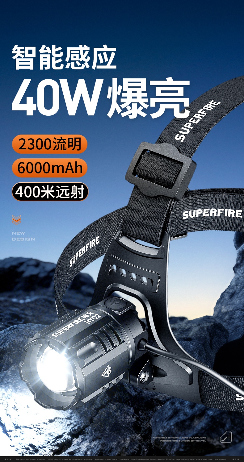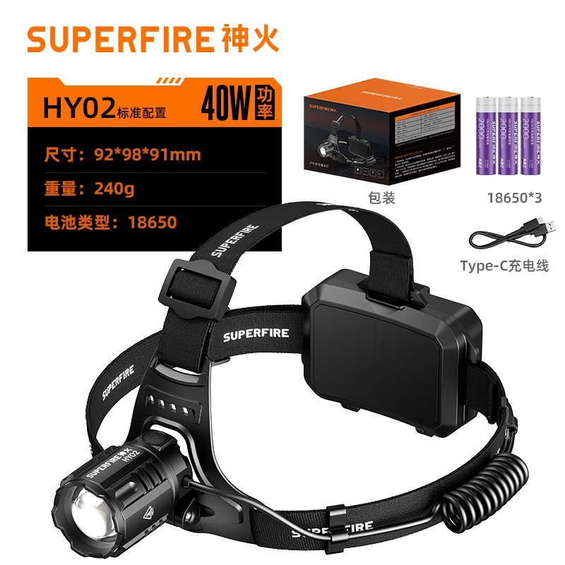 1、远近双灯,一键切换;伸缩调焦,明暗随心。 2、40W大功率,亮度高,照面效果好。 3、头灯角度调节:超90°角度随意调节,适宜各环境使用。