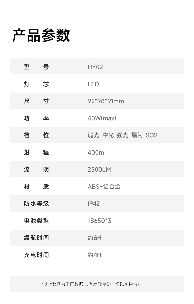 3、铝合金头部,防水耐摔。