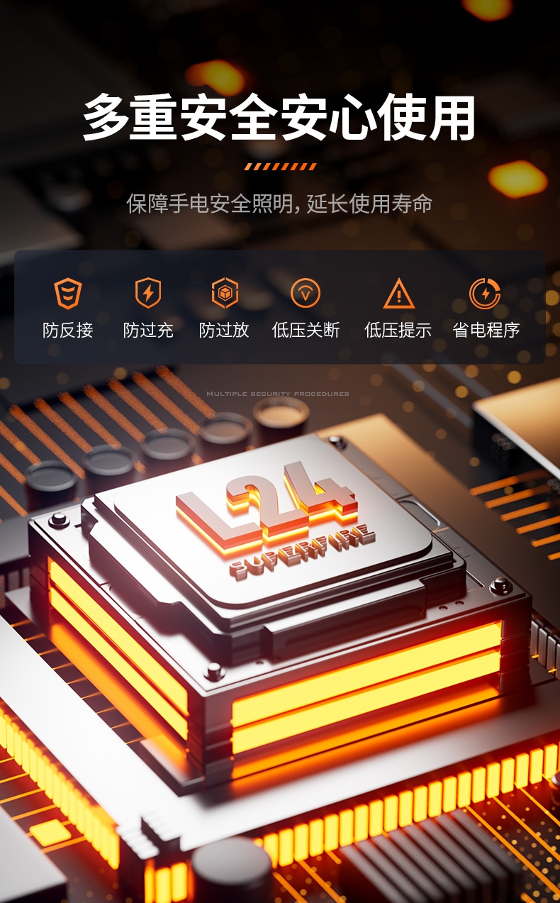 2、多种安全程序,可有效保护手电使用安全,延长手电使用寿命。