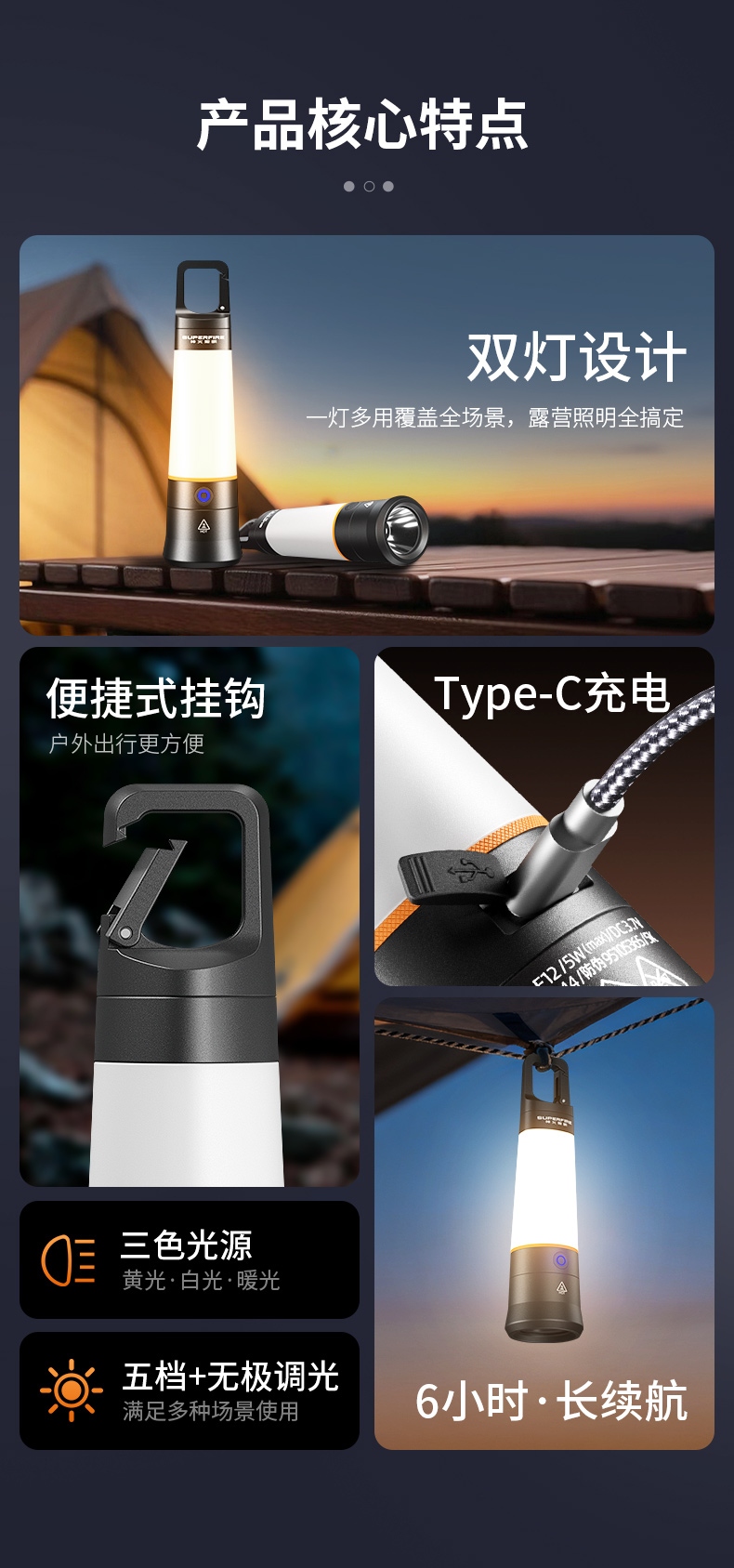 1、六档调光,可满足不同使用场景下的照明需求。 2、进口高亮朗明纳斯灯珠,照明效果更好。 3、含档位记忆,任意档位快捷关机 ,开机恢复关机前档位。