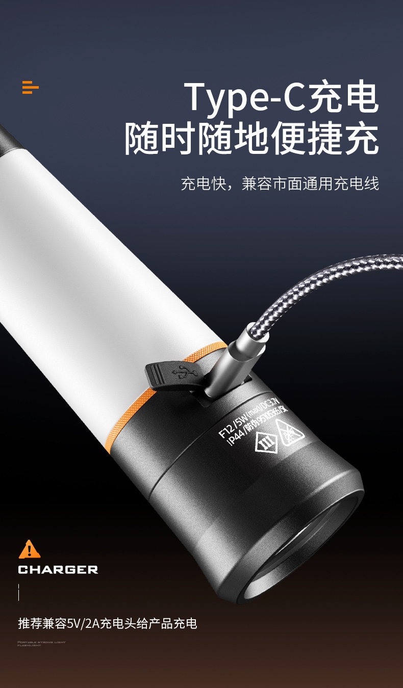 四档调光 Type-C充电 电量显示 铝合金筒身 持久续航 强力防水
