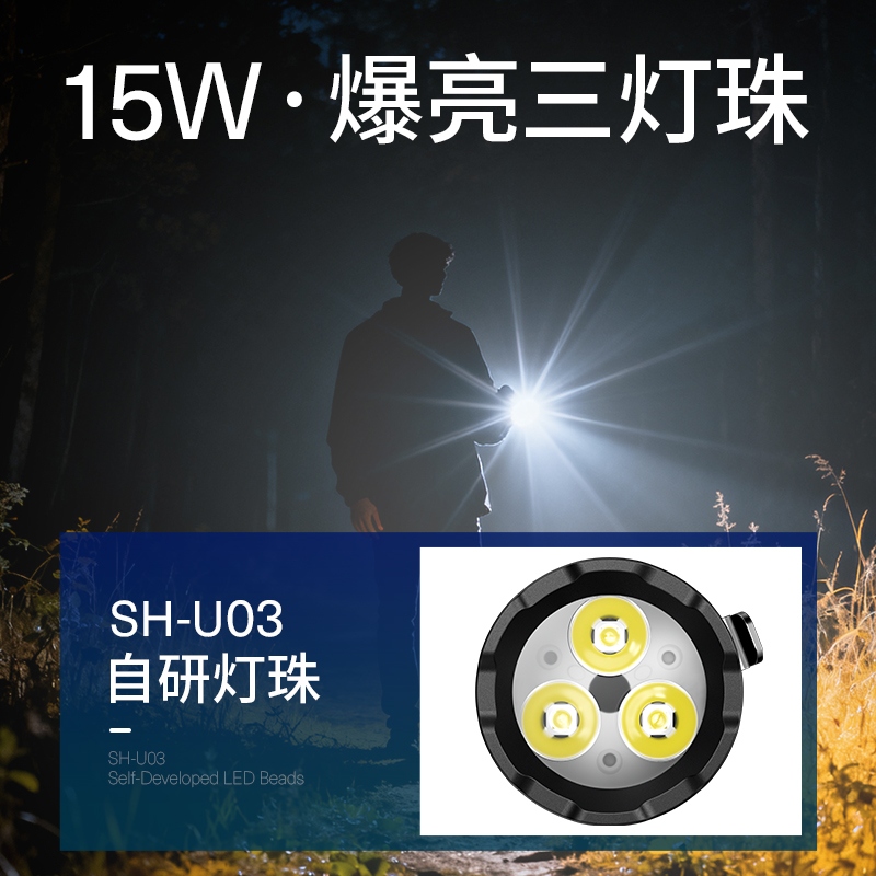 强光亮度,运动头灯,前后均衡设计,轻便不压头,可调节式头灯带,佩戴方便舒适,伸缩调焦,光照范围大,照射距离远,头灯角度调节,超90度角度随意调节,适宜各种环境使用