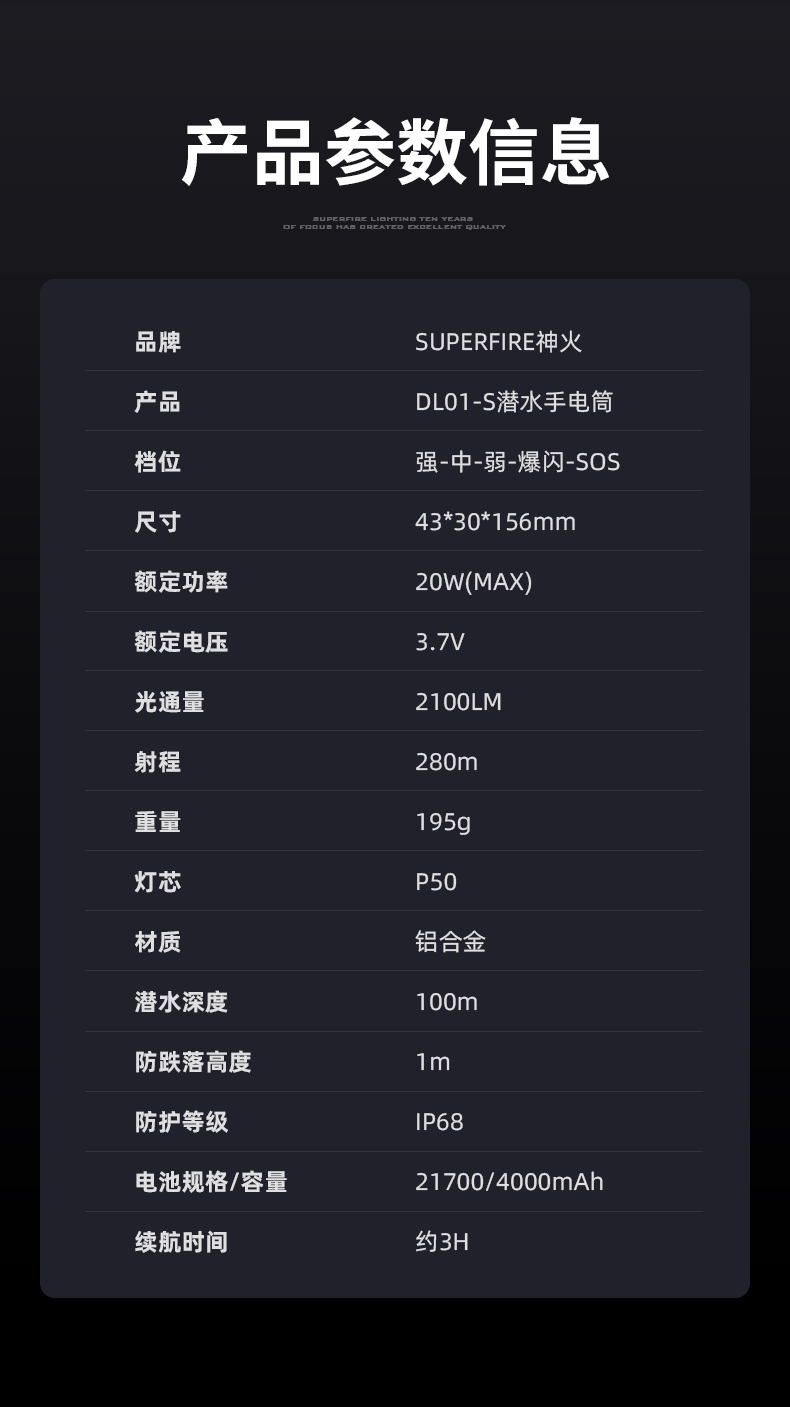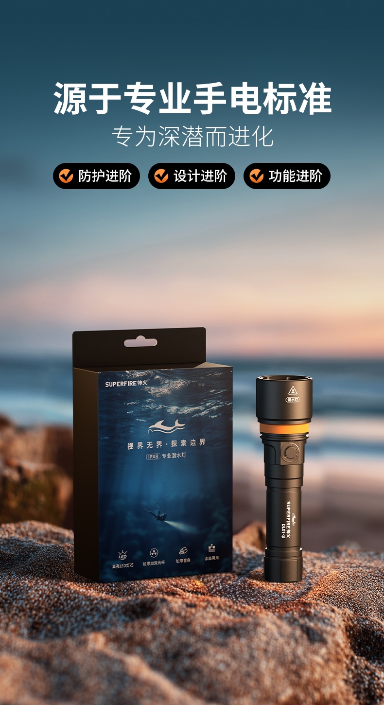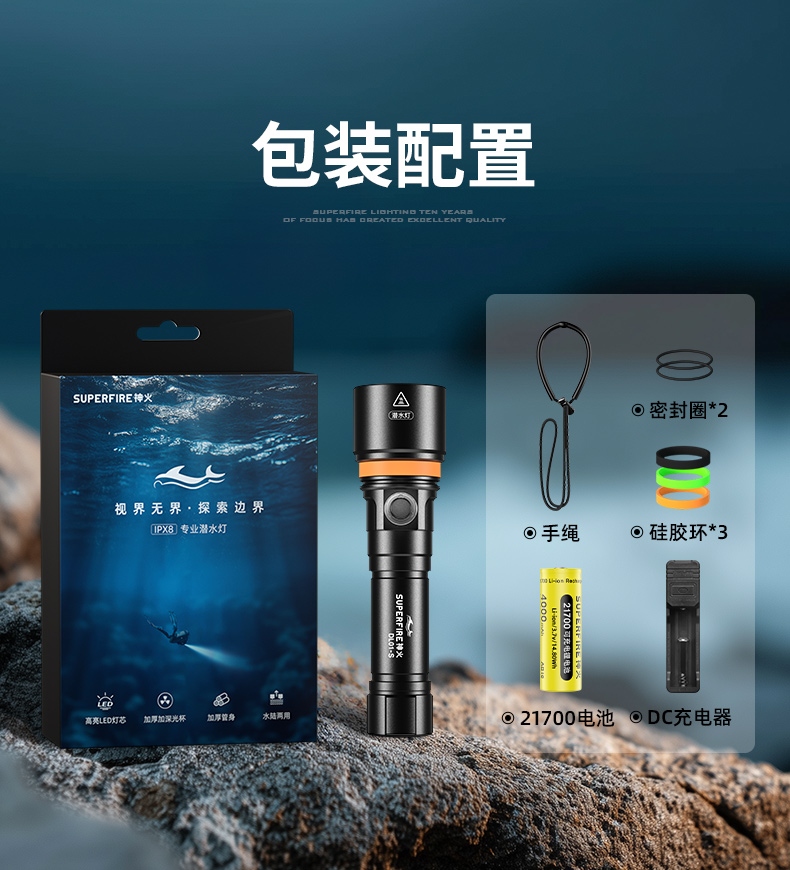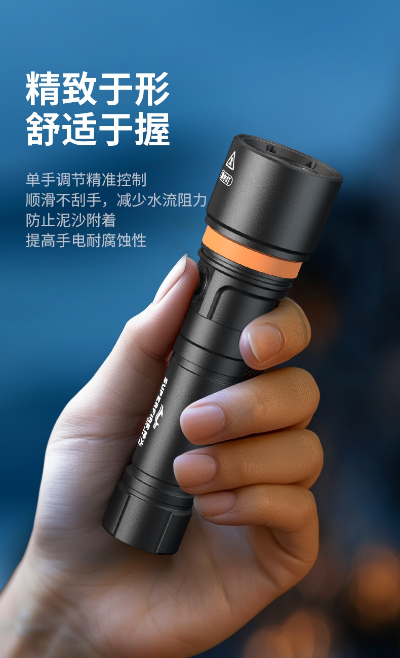 紧凑便携设计:轻量化设计与人体工学外形相结合,方便携带且握持舒适,不会给潜水者带来额外负担。