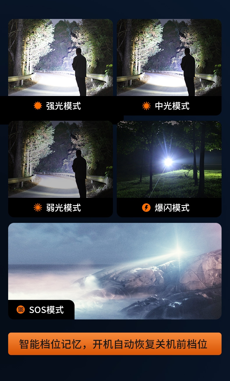 四档调光 Type-C充电 电量显示 铝合金筒身 持久续航 强力防水