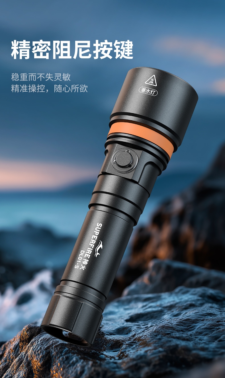 便携开关操作:按钮式设计,即使穿戴潜水手套也能轻松操作,同时具备多种光照模式切换功能。