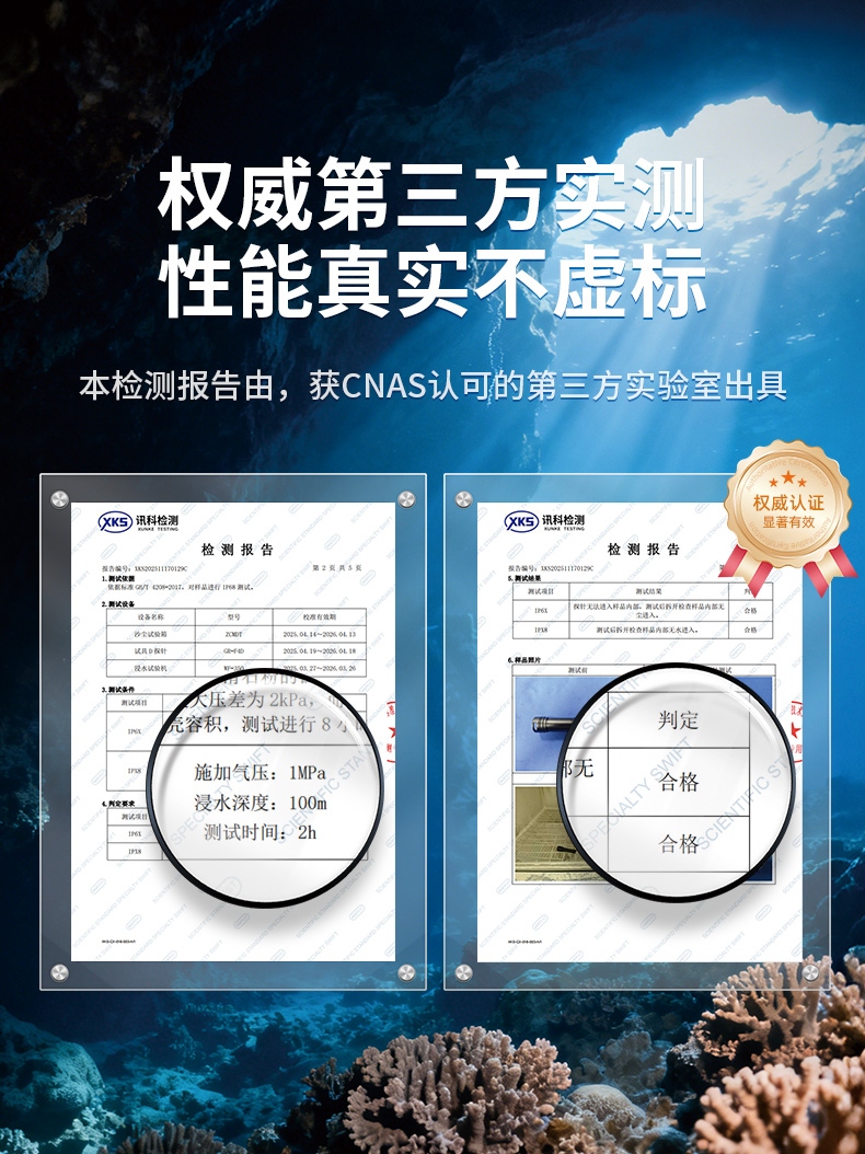 专业级防水设计:经过严格测试,达到IP68标准,能够承受深达100米甚至更深的水压,是深海探索的理想选择。