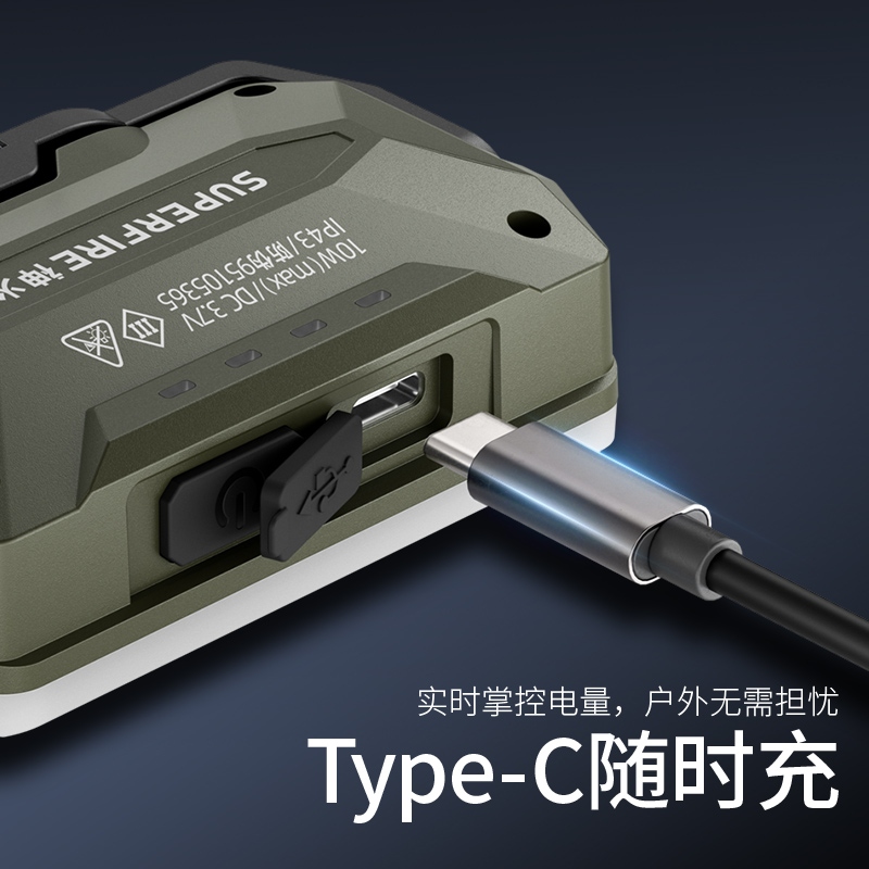3、多样化充电,使用方便;设有type-c充电接口,可使用充电器、充电宝、电脑等设备为灯具充电。