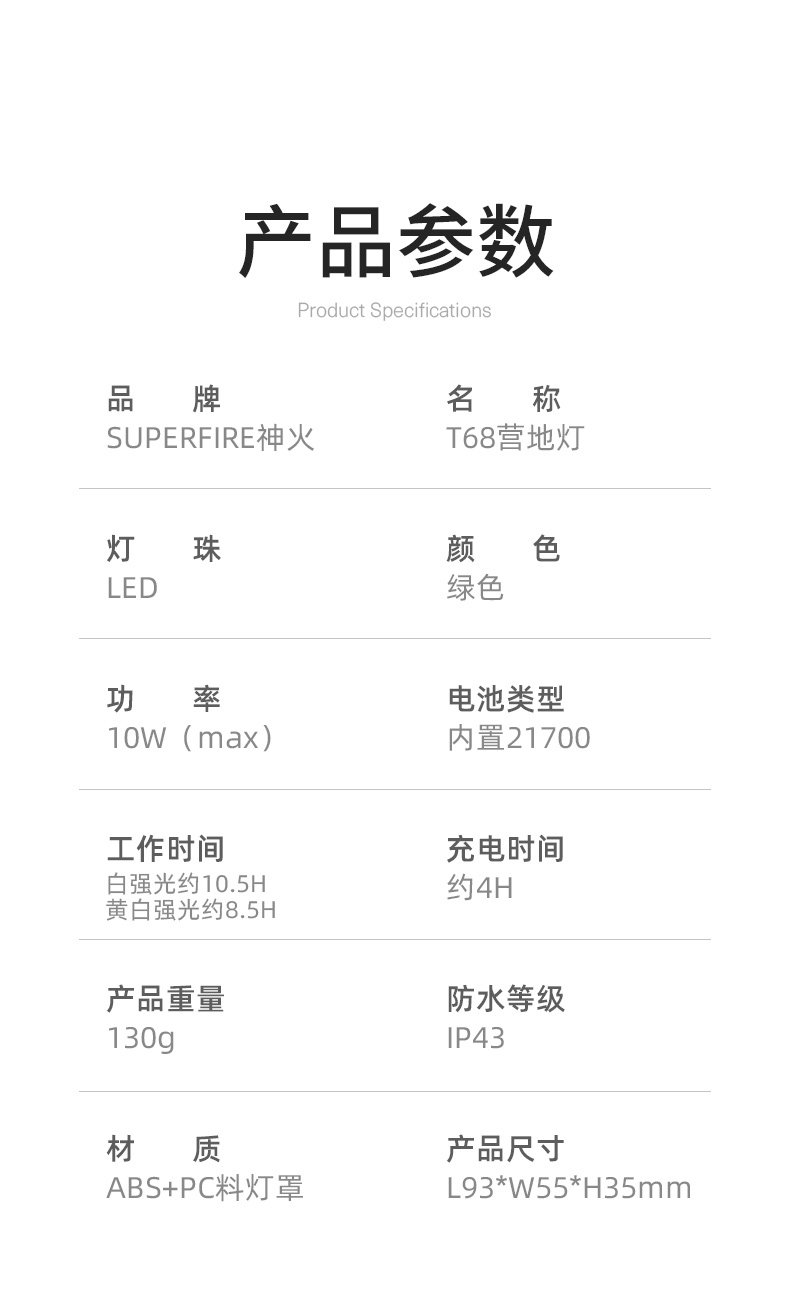 产品中心 > 户外照明 > 营地灯 > SUPERFIRE神火多功能户外露营灯T68