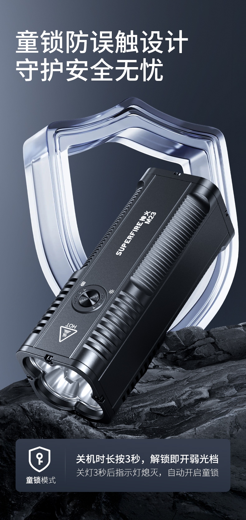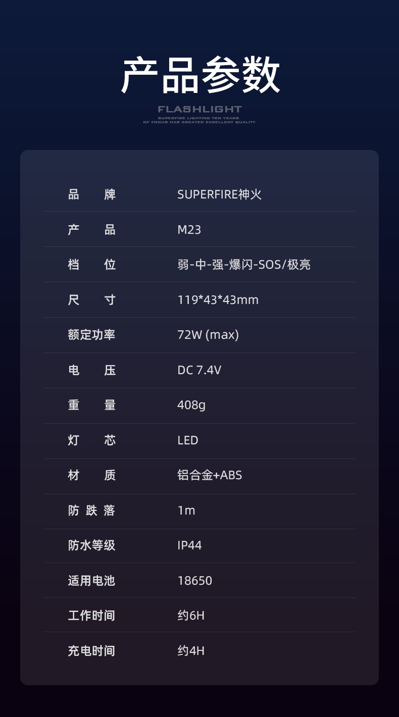 四档调光 Type-C充电 电量显示 铝合金筒身 持久续航 强力防水