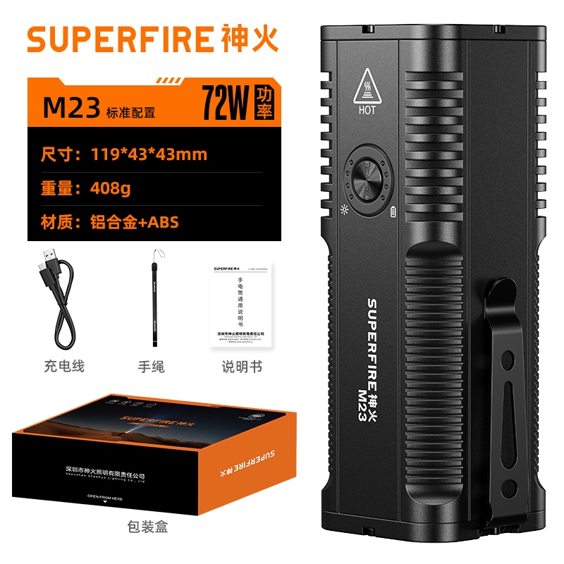 1、千米远射,射程更远,光斑更聚焦。 2、进口灯珠,亮度高,照明效果更好。 3、前后双按键,光源一键点亮,高亮瞬间开启。