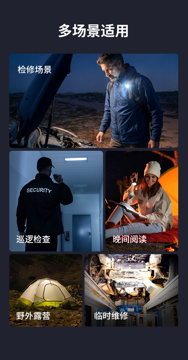 1、六档调光,可满足不同使用场景下的照明需求。 2、进口高亮朗明纳斯灯珠,照明效果更好。 3、含档位记忆,任意档位快捷关机 ,开机恢复关机前档位。