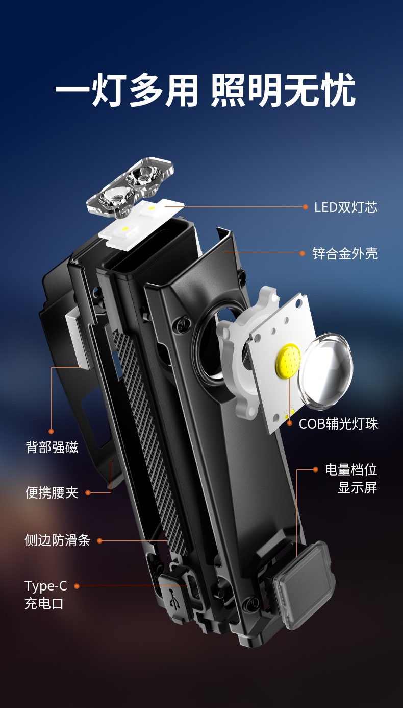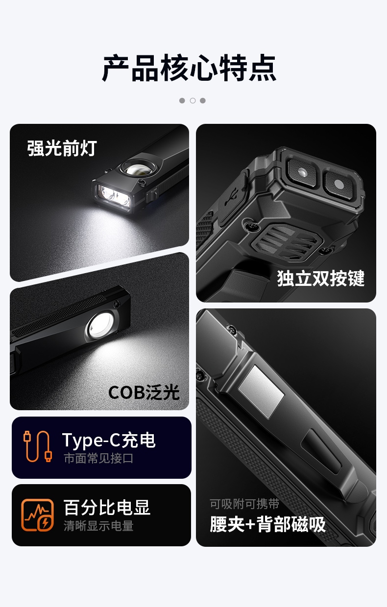四档调光 Type-C充电 电量显示 铝合金筒身 持久续航 强力防水