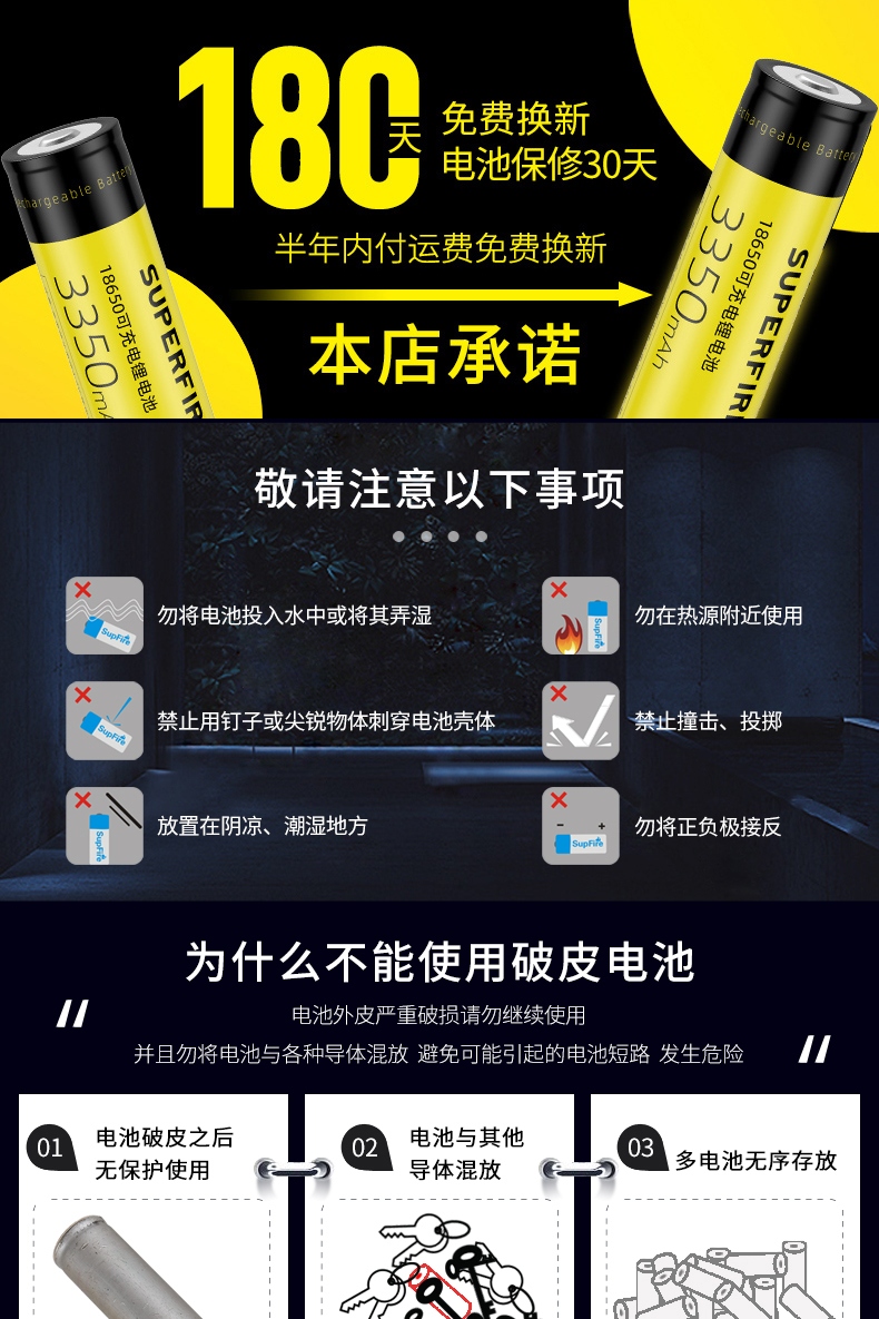 1、千米远射,射程更远,光斑更聚焦。 2、进口灯珠,亮度高,照明效果更好。 3、前后双按键,光源一键点亮,高亮瞬间开启。