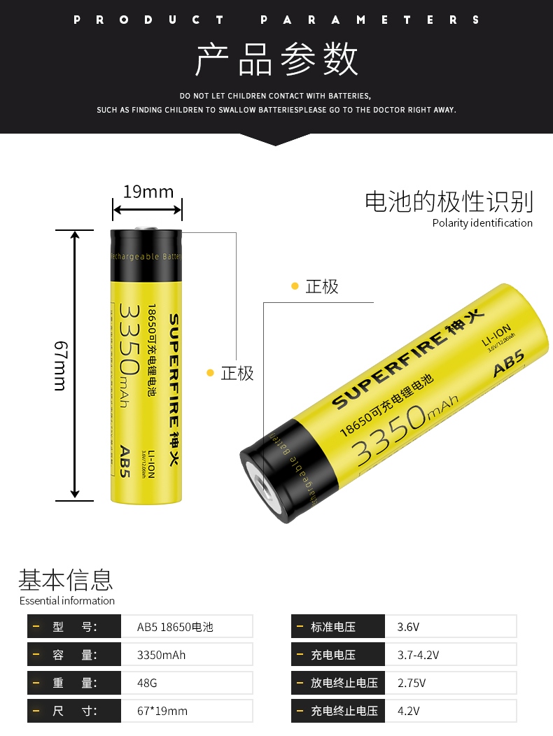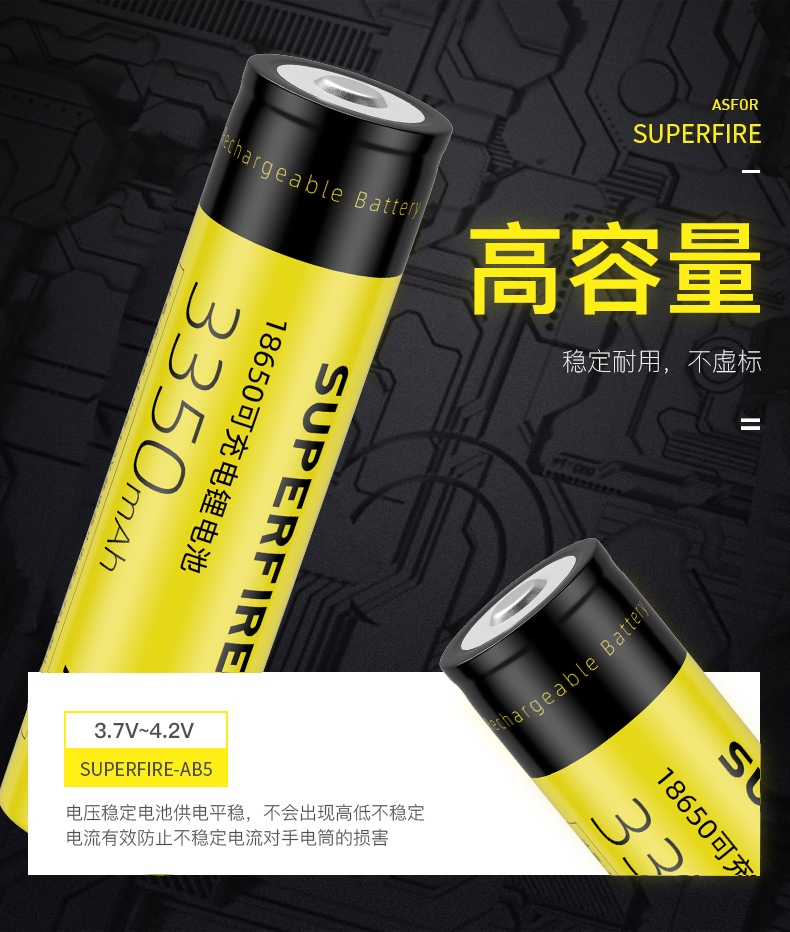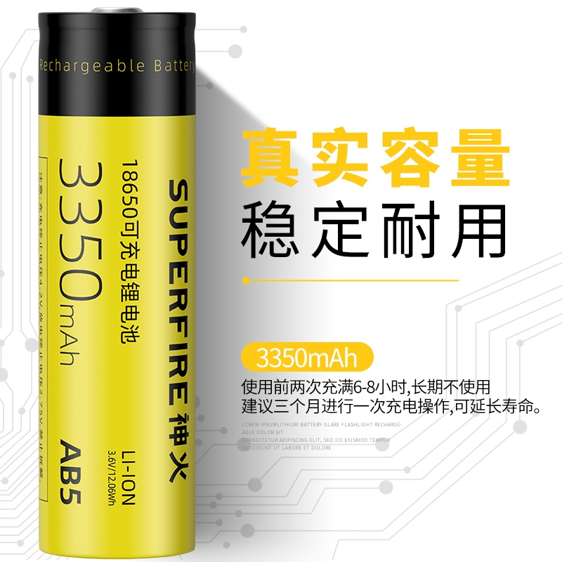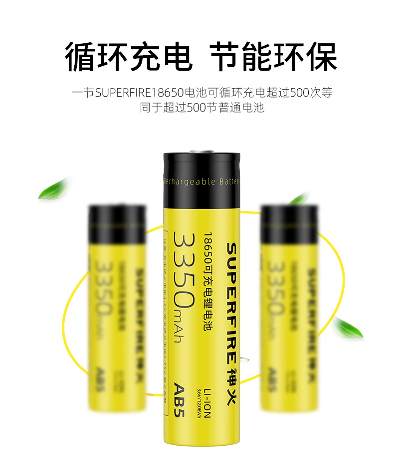 AB5电池;规格:18650锂充电电池,3350mAh